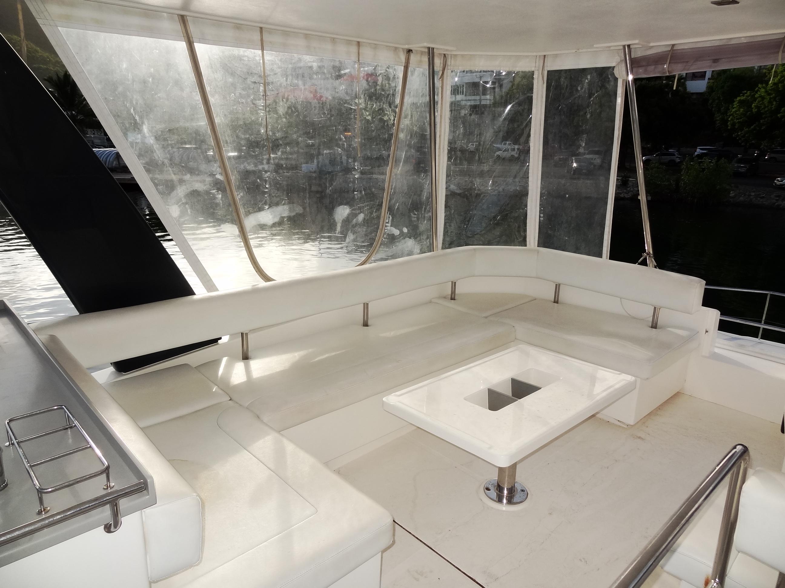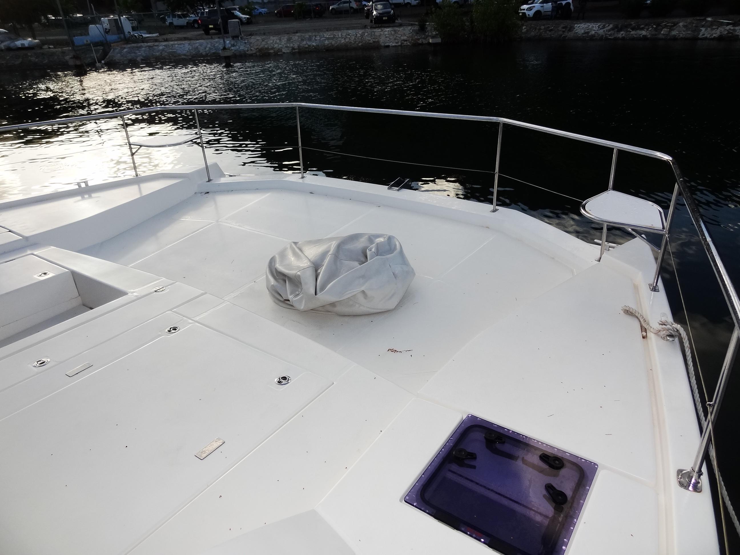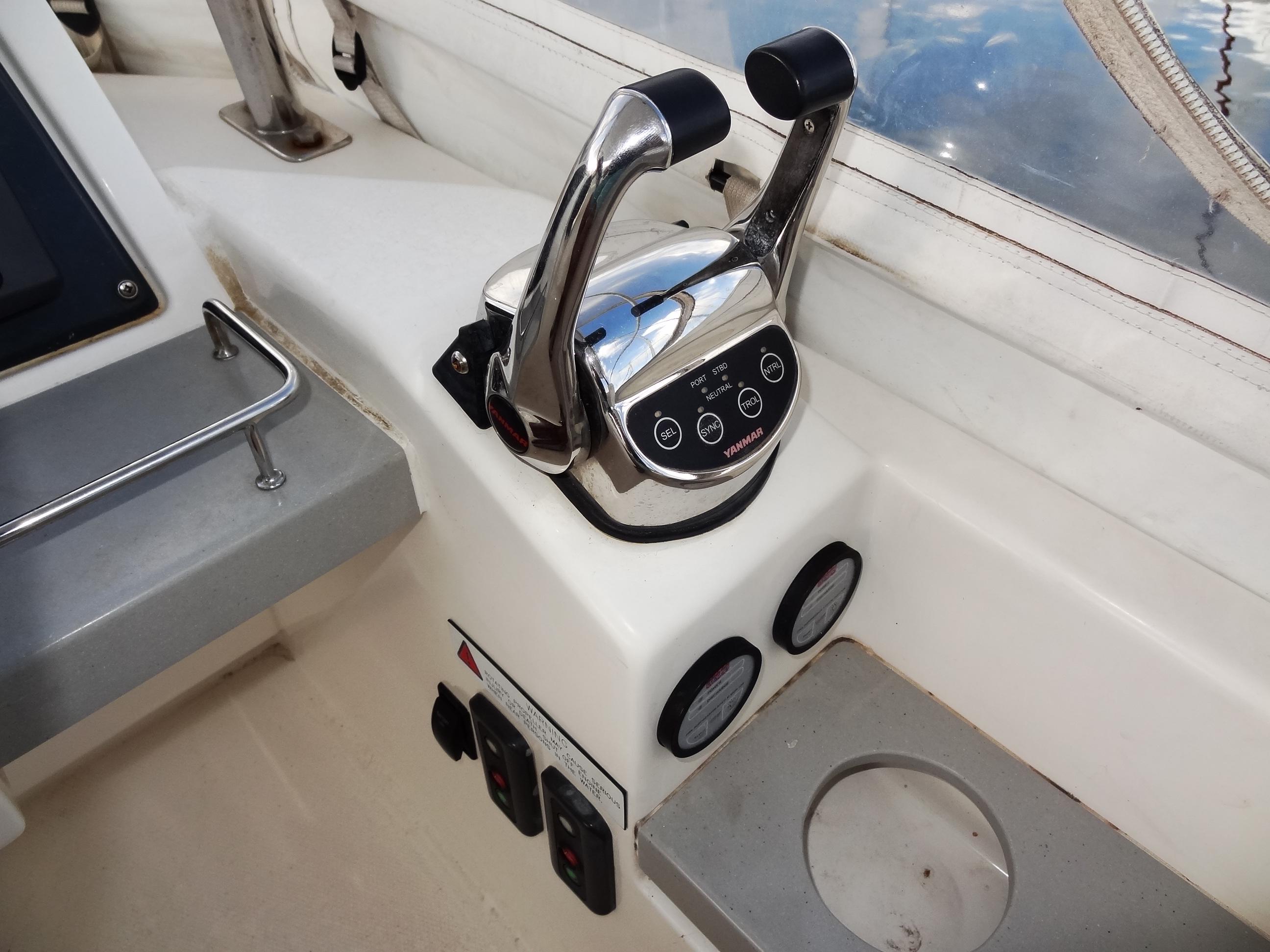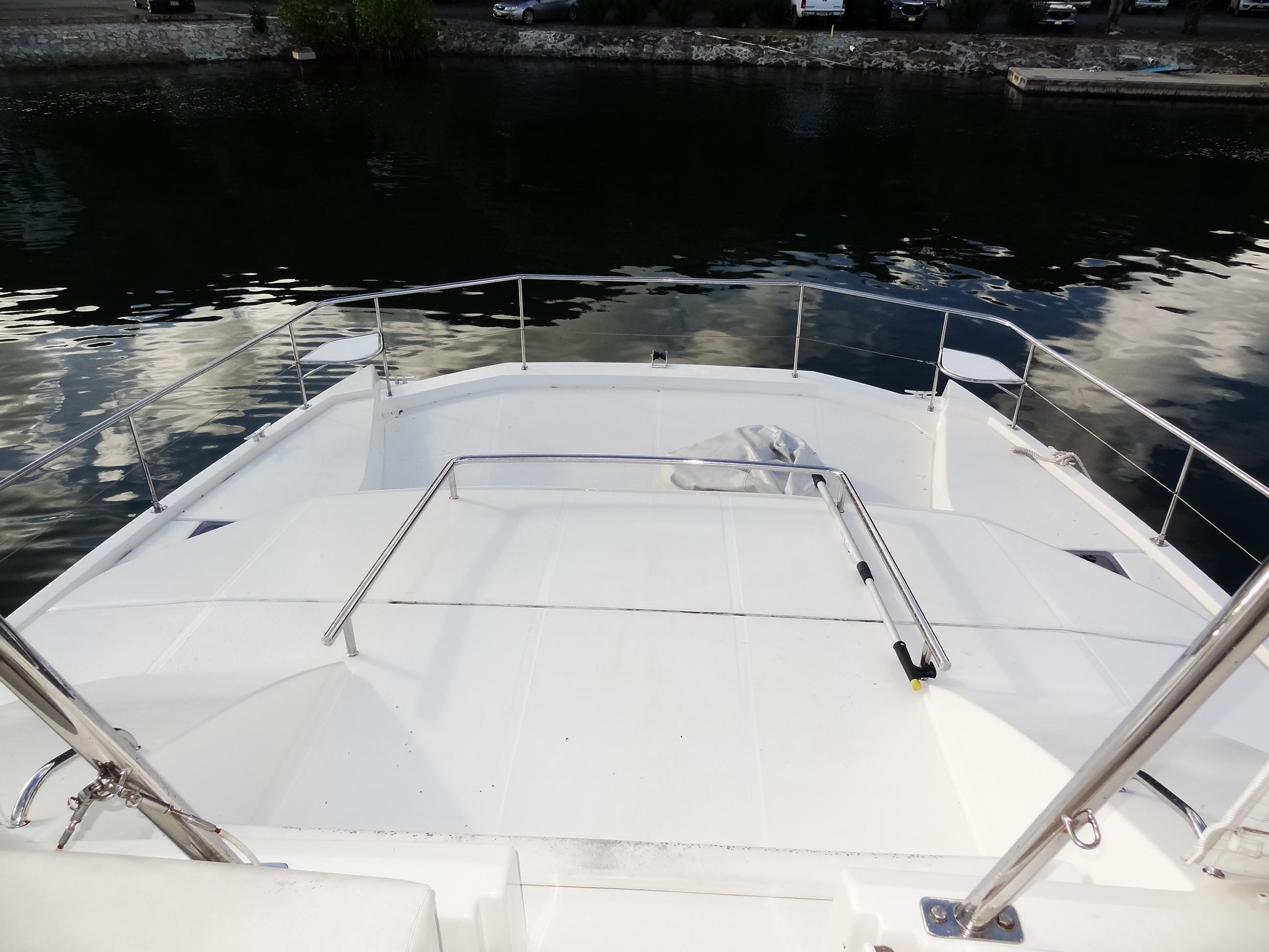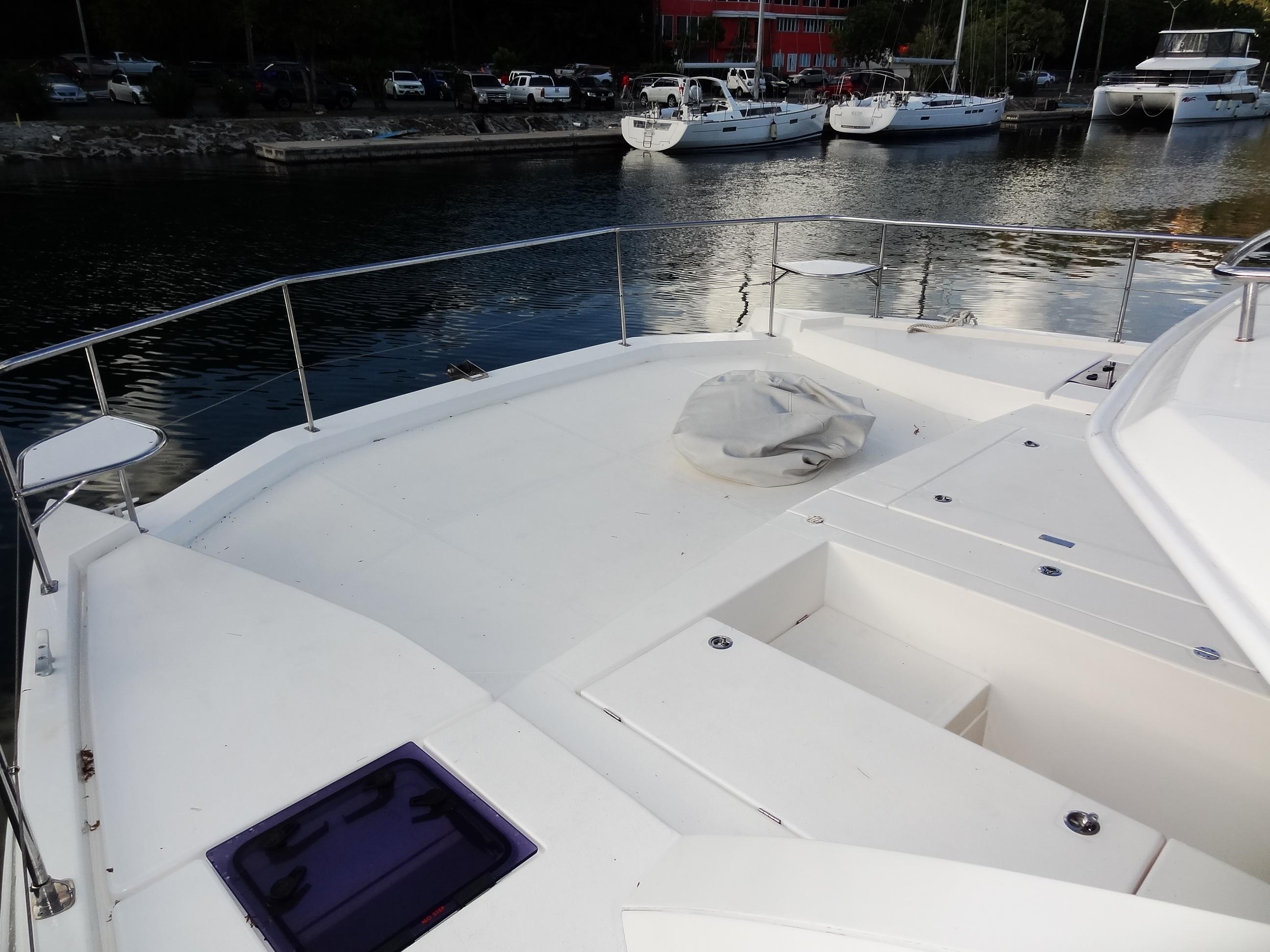 The narrower hulls and less wetted surface area below the waterline allow the boat to reach an impressive maximum speed of 23+ knots (27 MPH) and maintaining exceptional fuel efficiency consistent with the brand. Her large fly-bridge offers 360 degree views making navigation easy and safe. The new interior layout with the galley located forward and the forward facing table and settee are now located aft. The starboard hull is entirely dedicated to the Owner’s suite with spacious master cabin with private head with large separate shower compartment in the forward section of the hull. The light blond interior shows well through out the boat including guest cabins adding to the feeling of ample space.