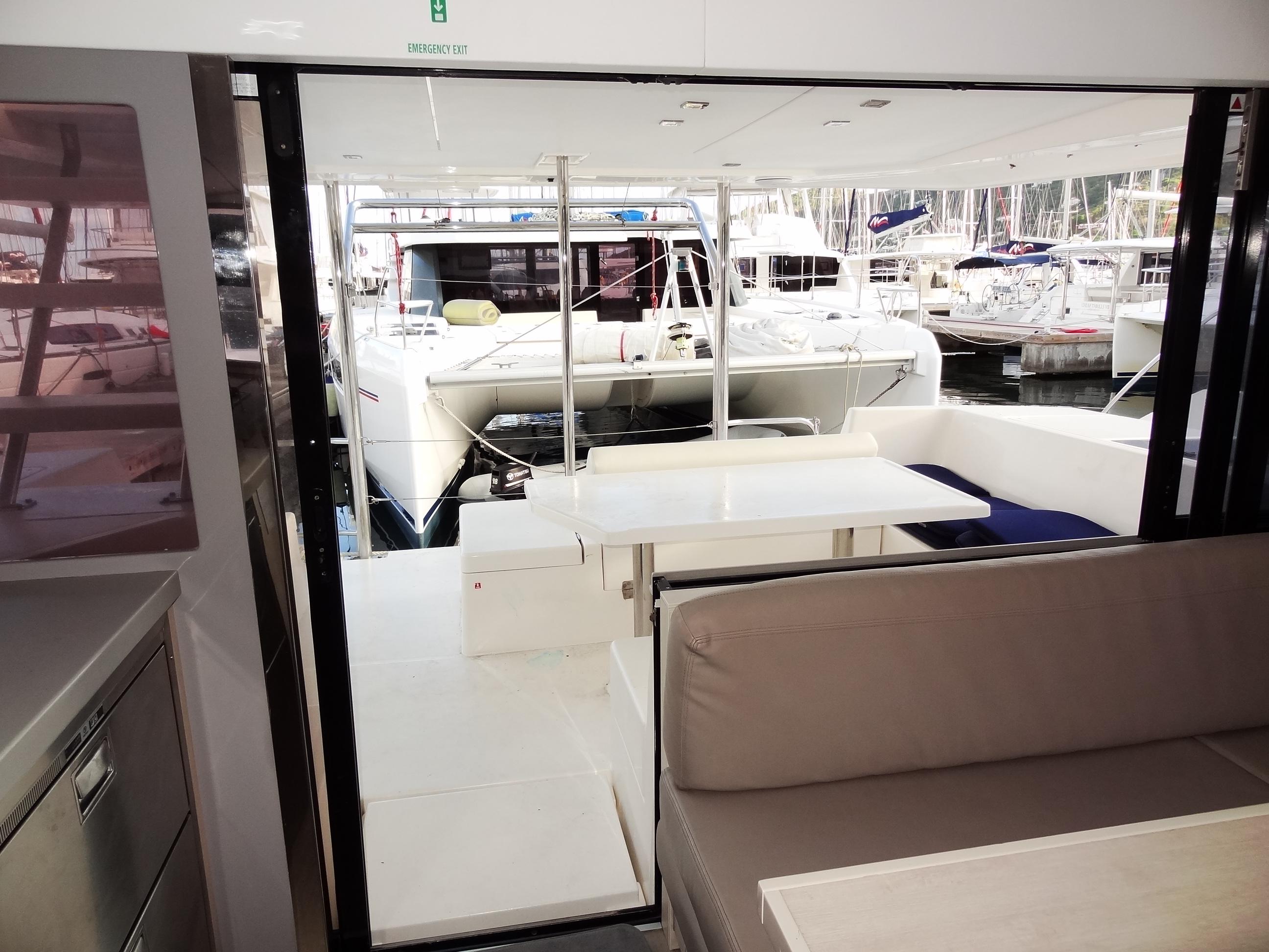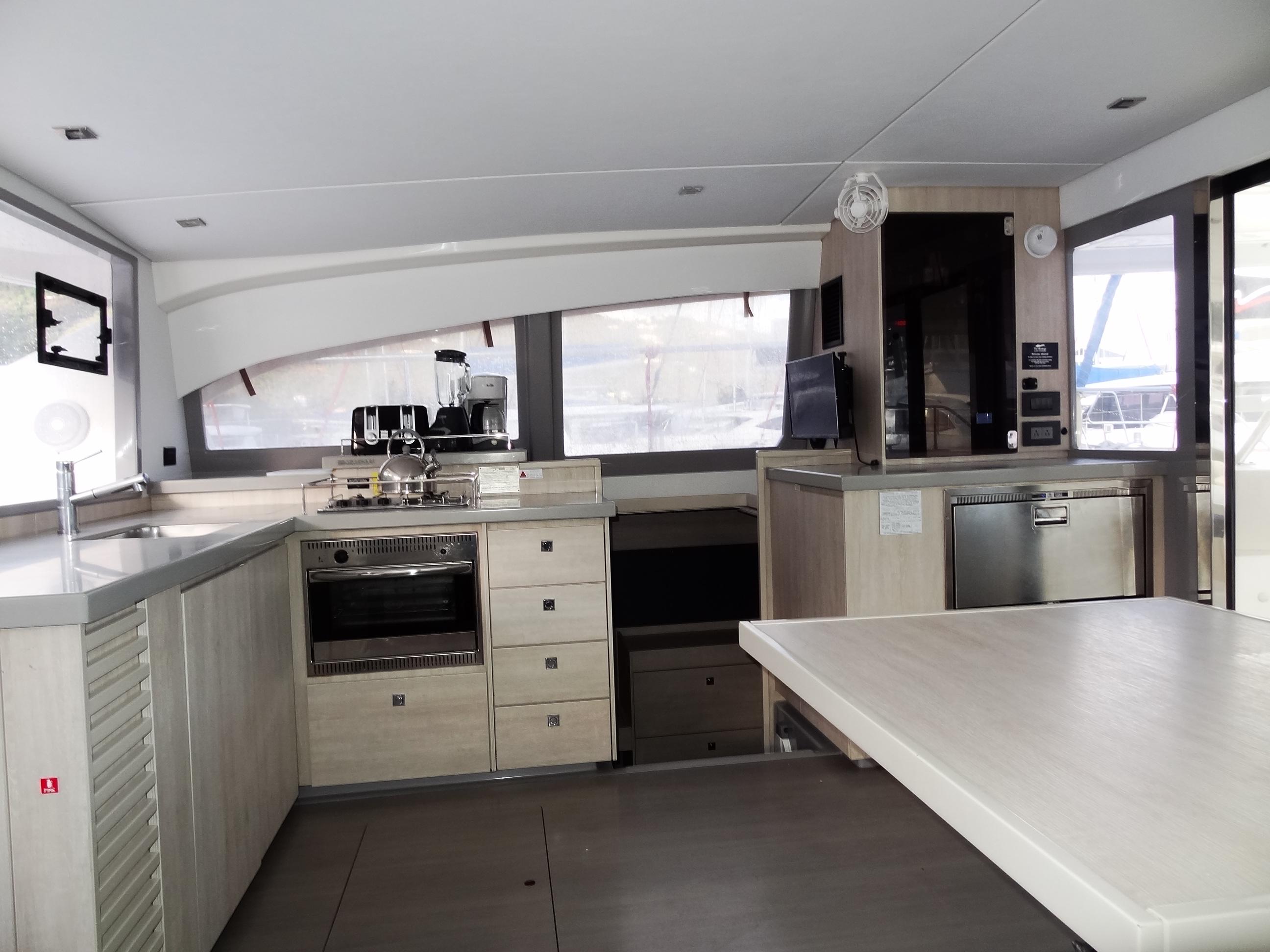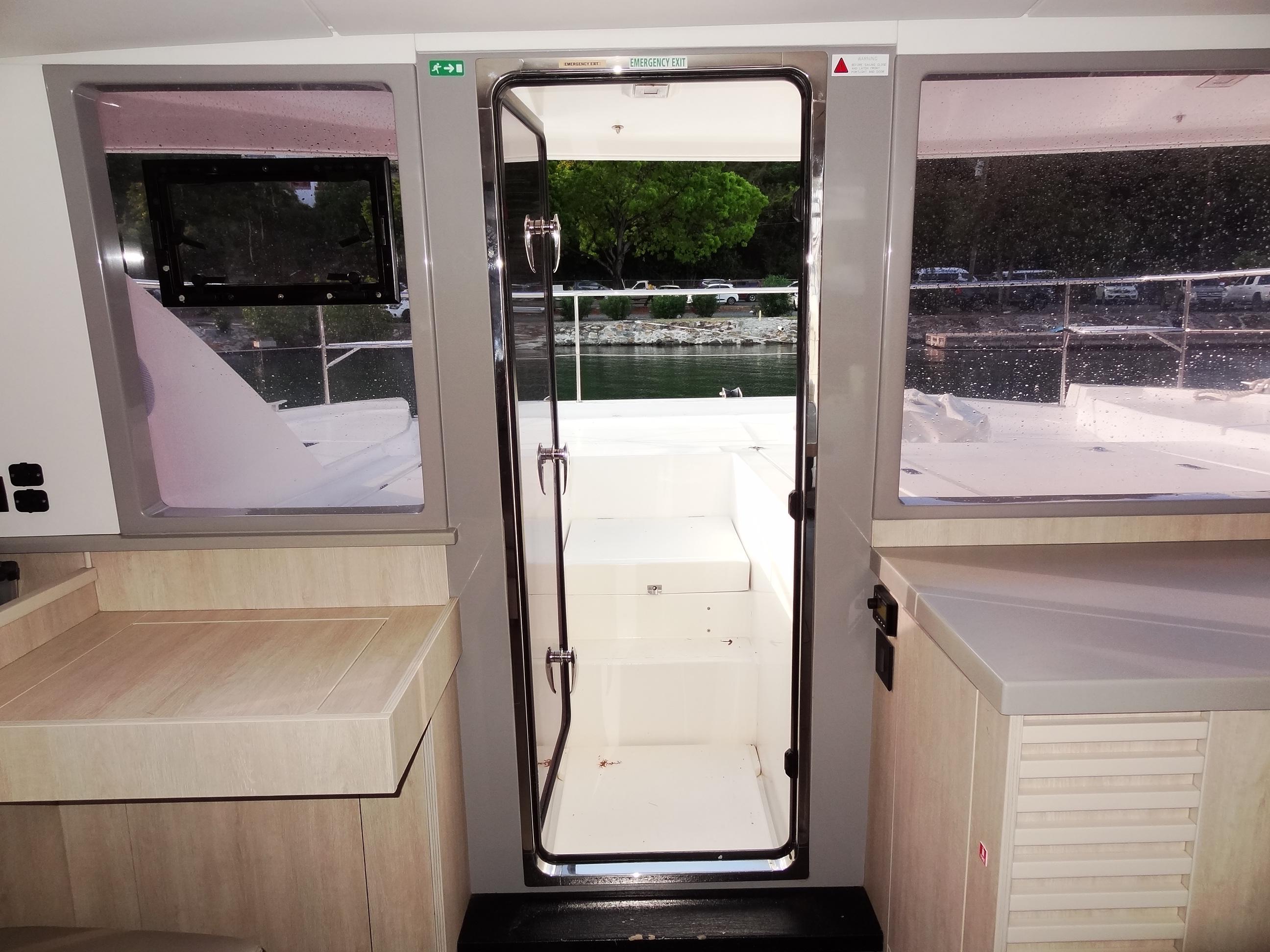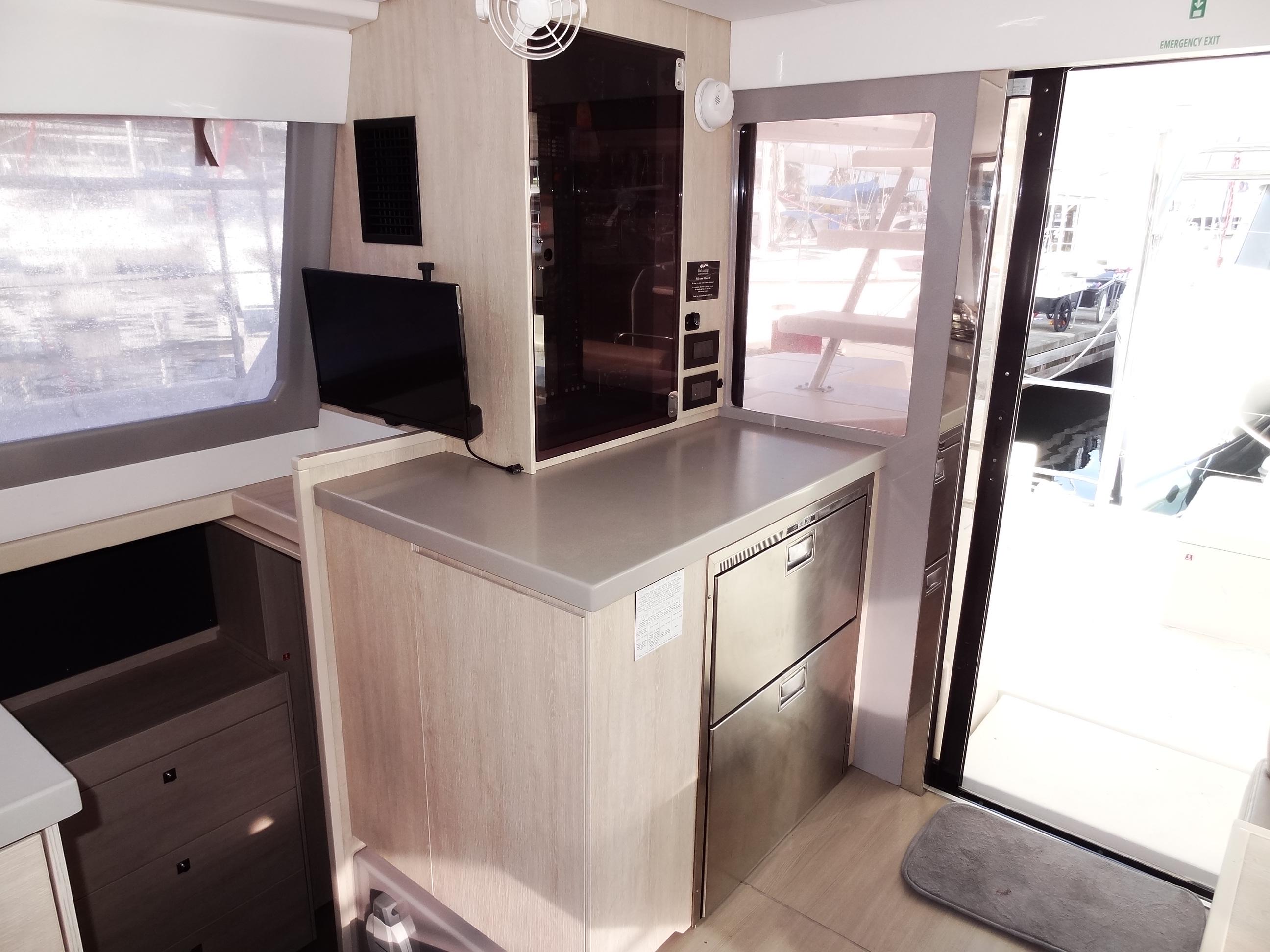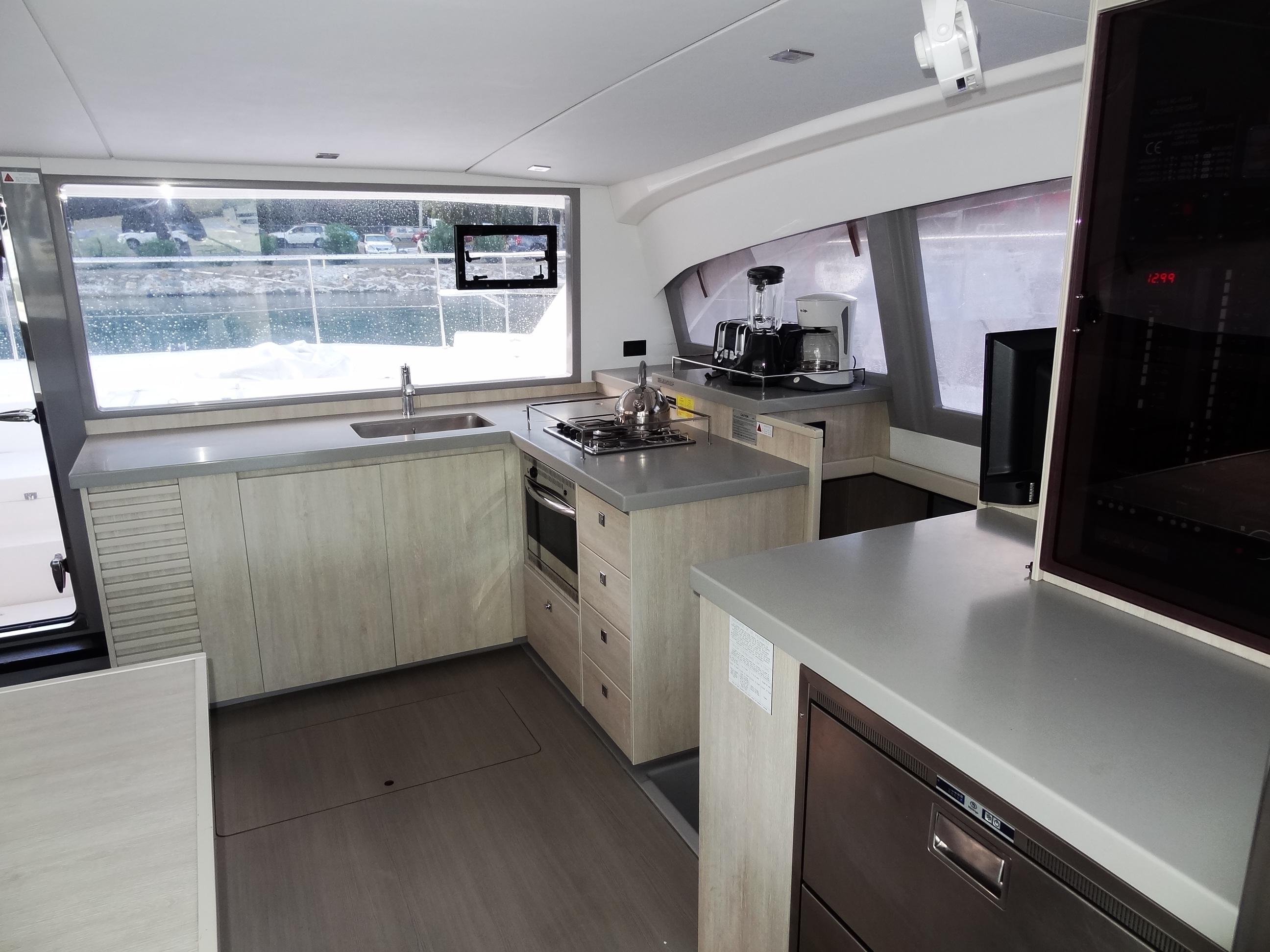 Her increased interior-exterior living space promotes a convivial atmosphere and her functional design makes her exceedingly user friendly. Whether crossing oceans, at anchor or on the deck this boat will not disappoint. The stepped hull design offers 27% more interior volume than her predecessor above the waterline, allowing for a roomy accommodation in the hulls without sacrificing on performance of the yacht.