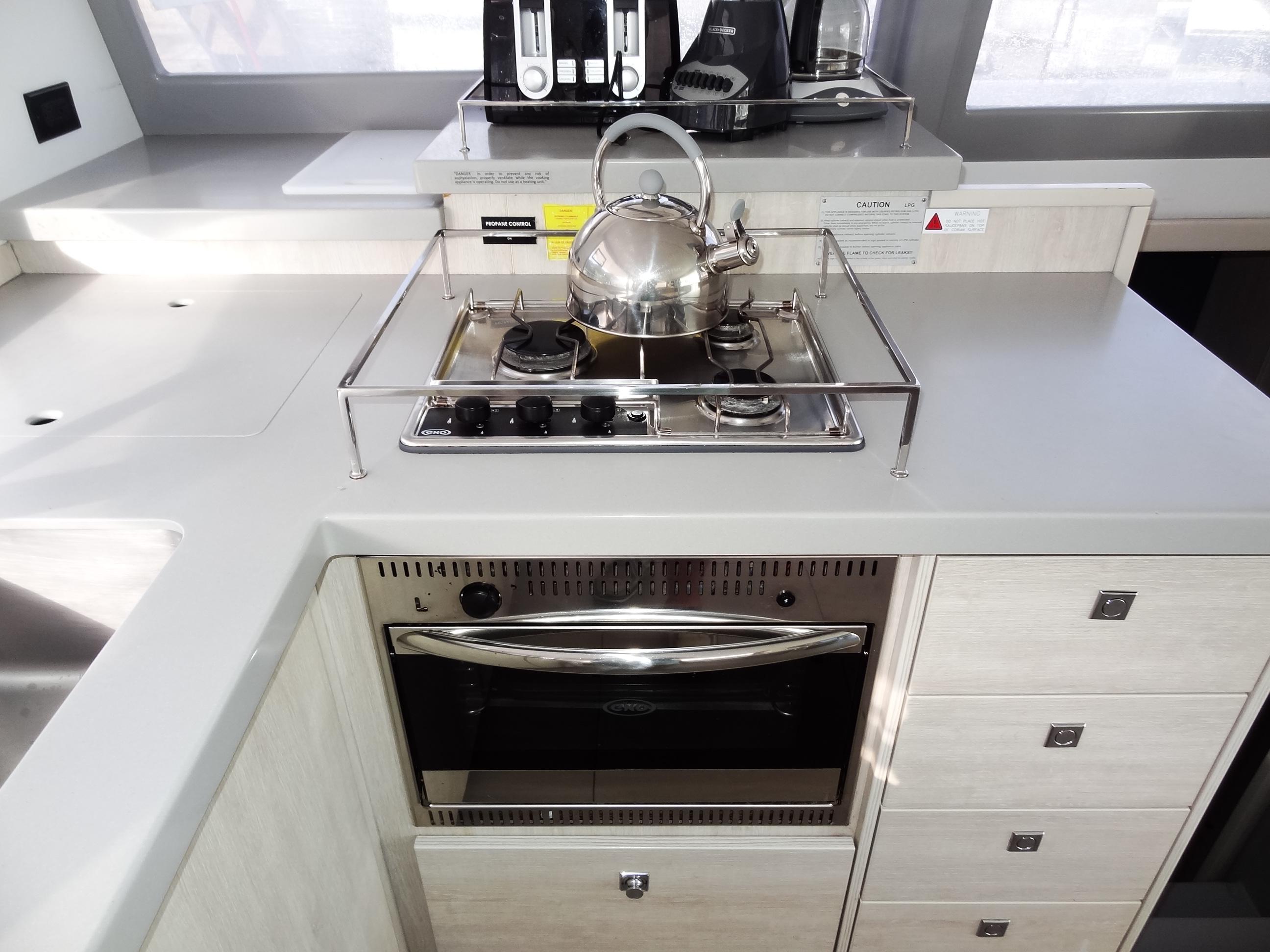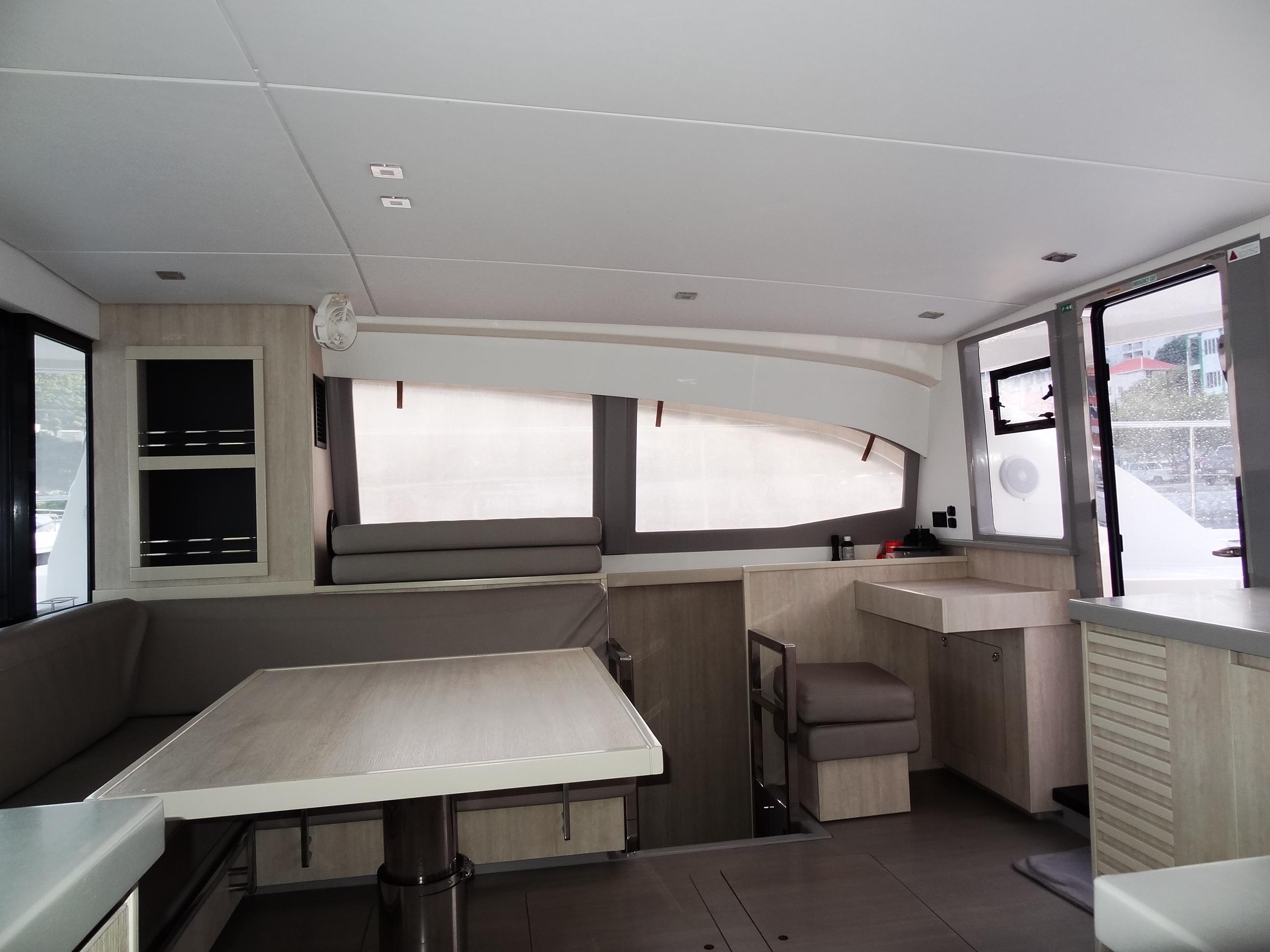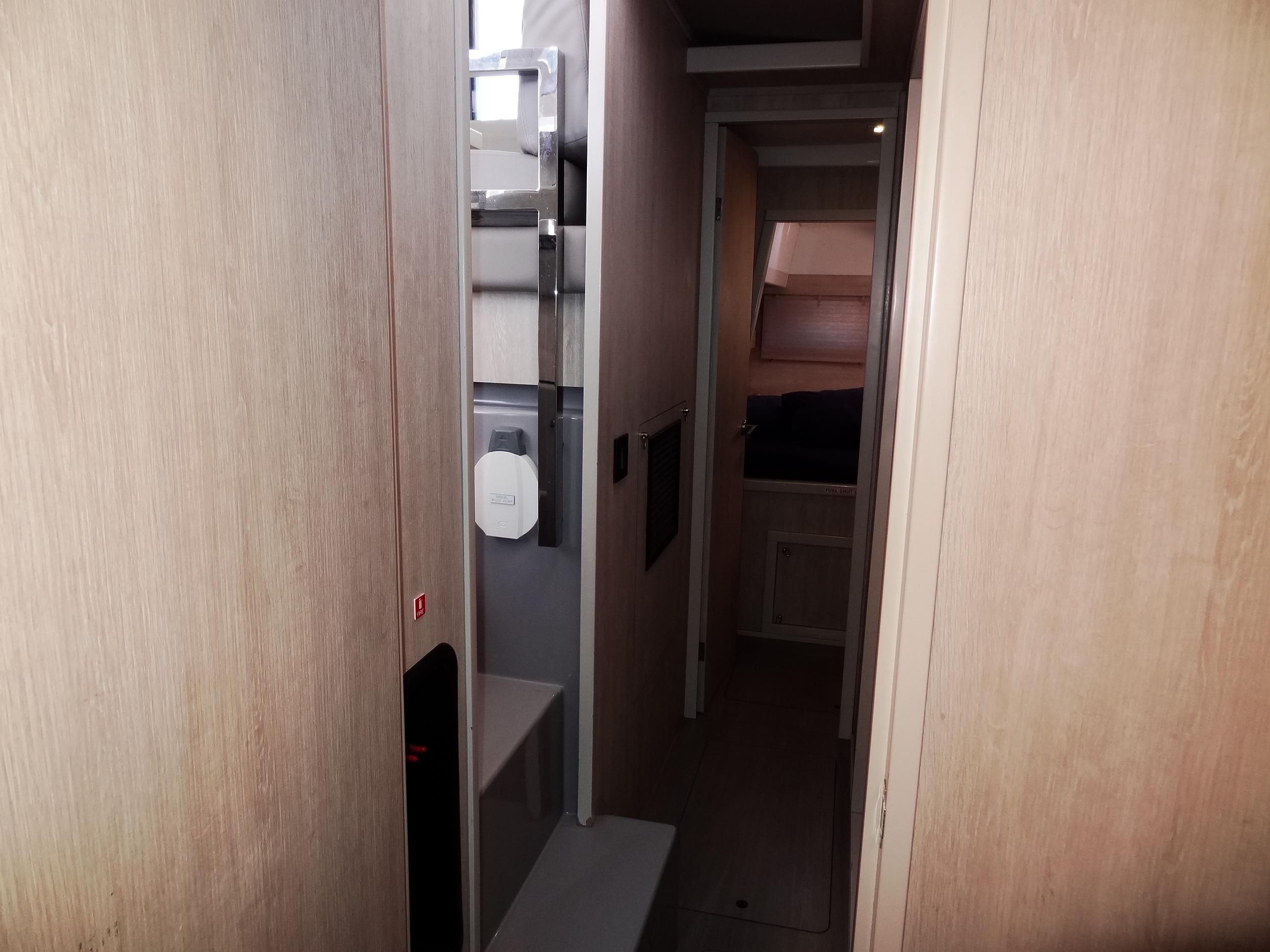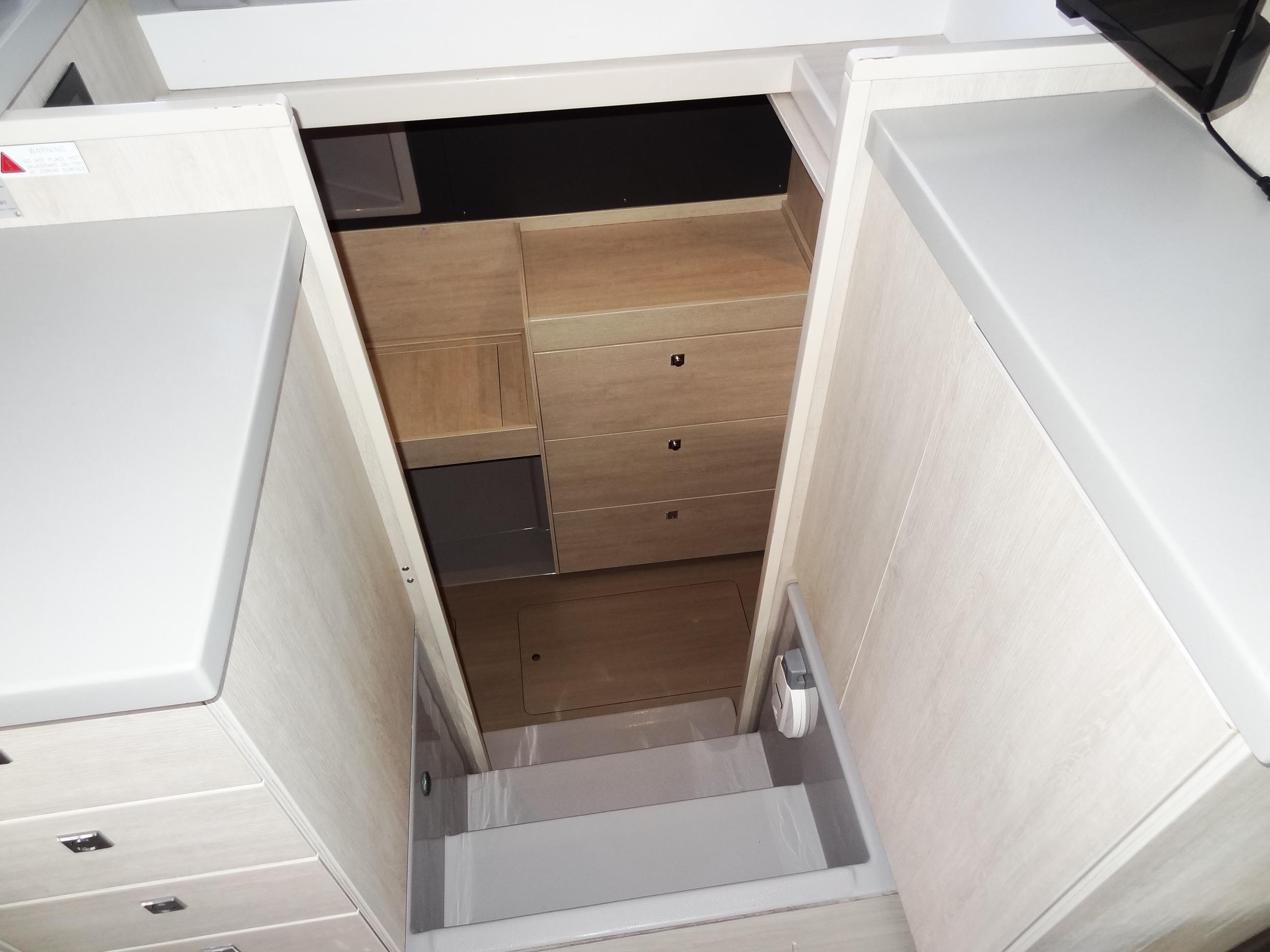 Her increased interior-exterior living space promotes a convivial atmosphere and her functional design makes her exceedingly user friendly. Whether crossing oceans, at anchor or on the deck this boat will not disappoint. The stepped hull design offers 27% more interior volume than her predecessor above the waterline, allowing for a roomy accommodation in the hulls without sacrificing on performance of the yacht.
