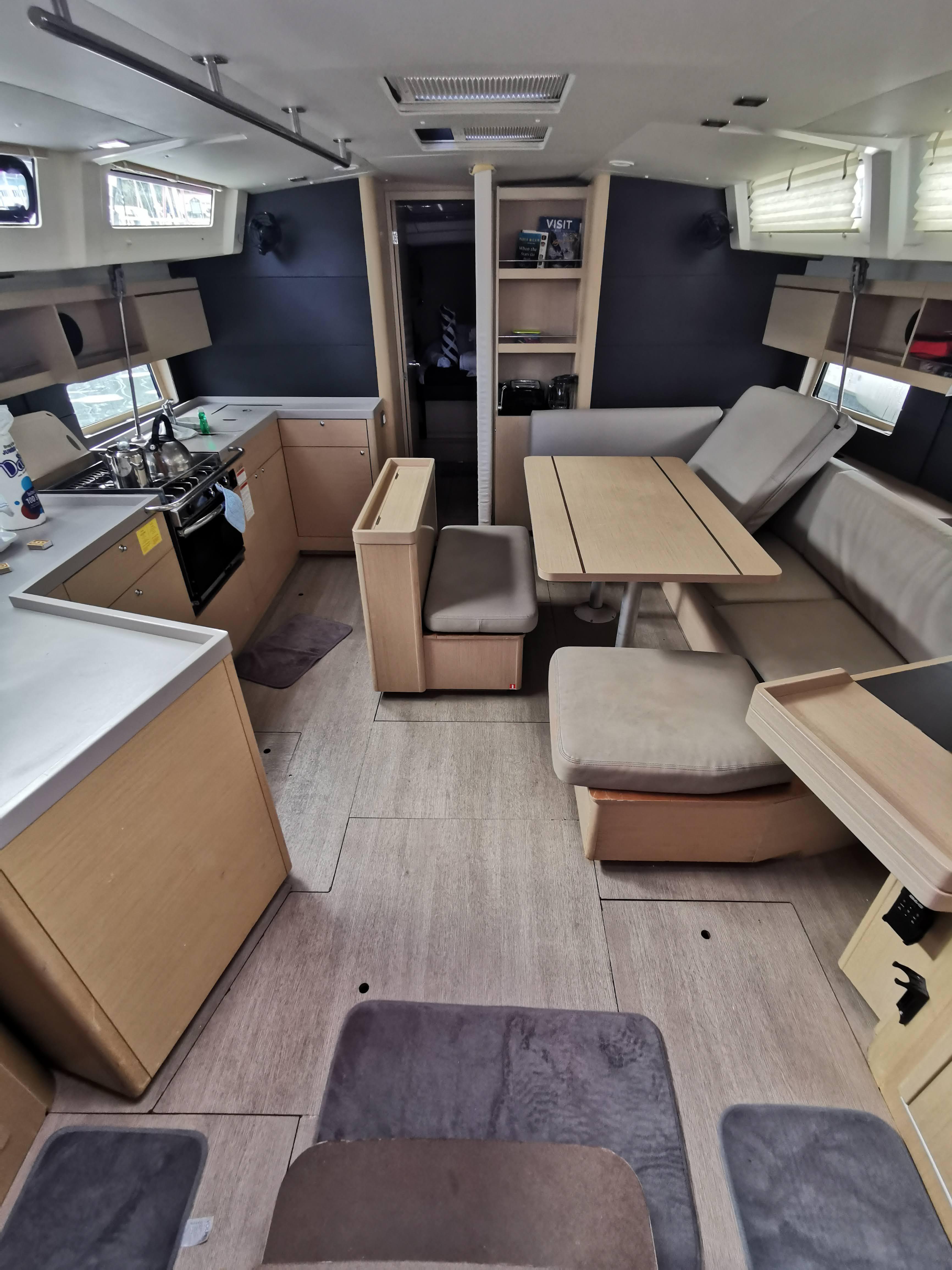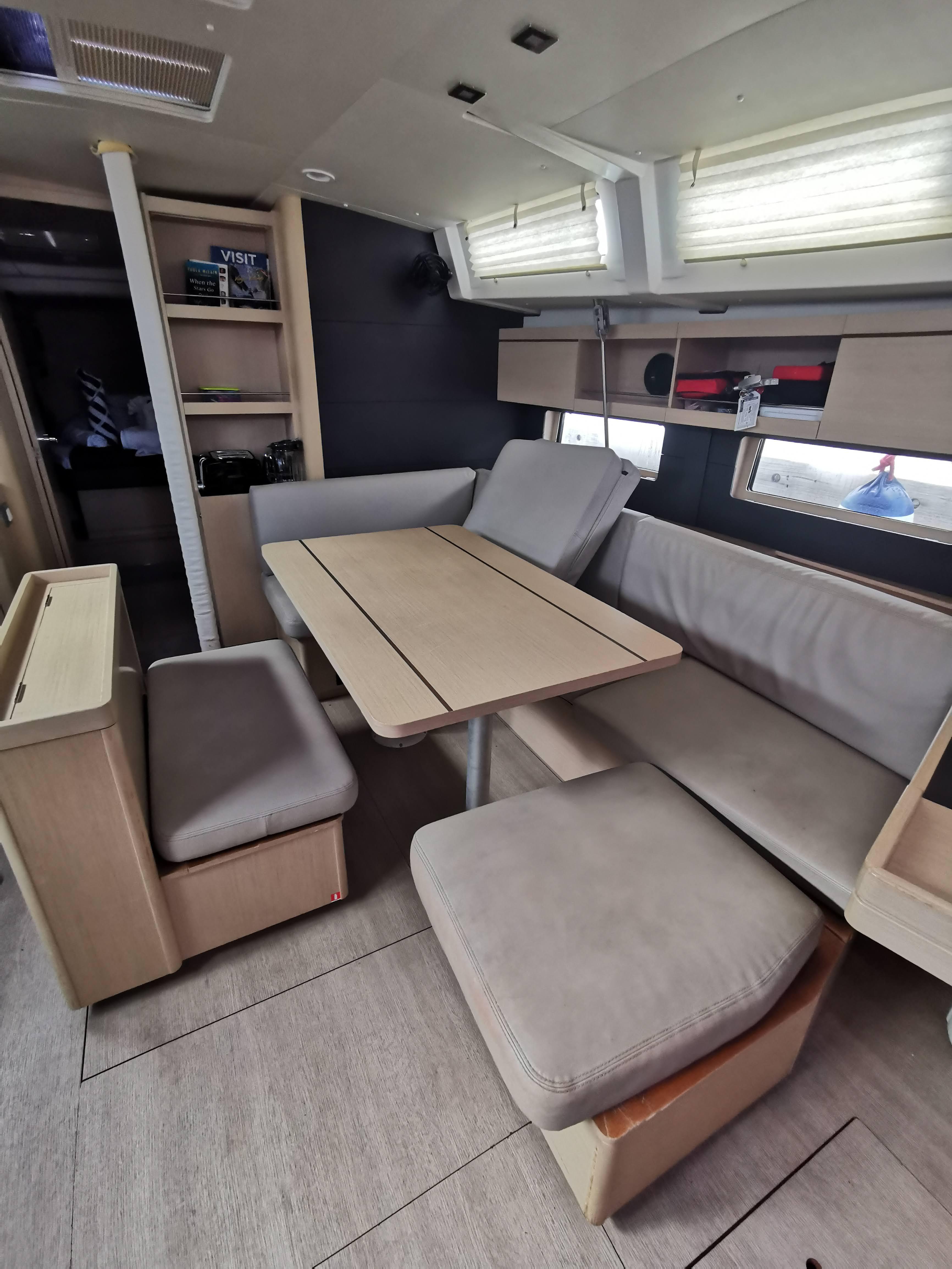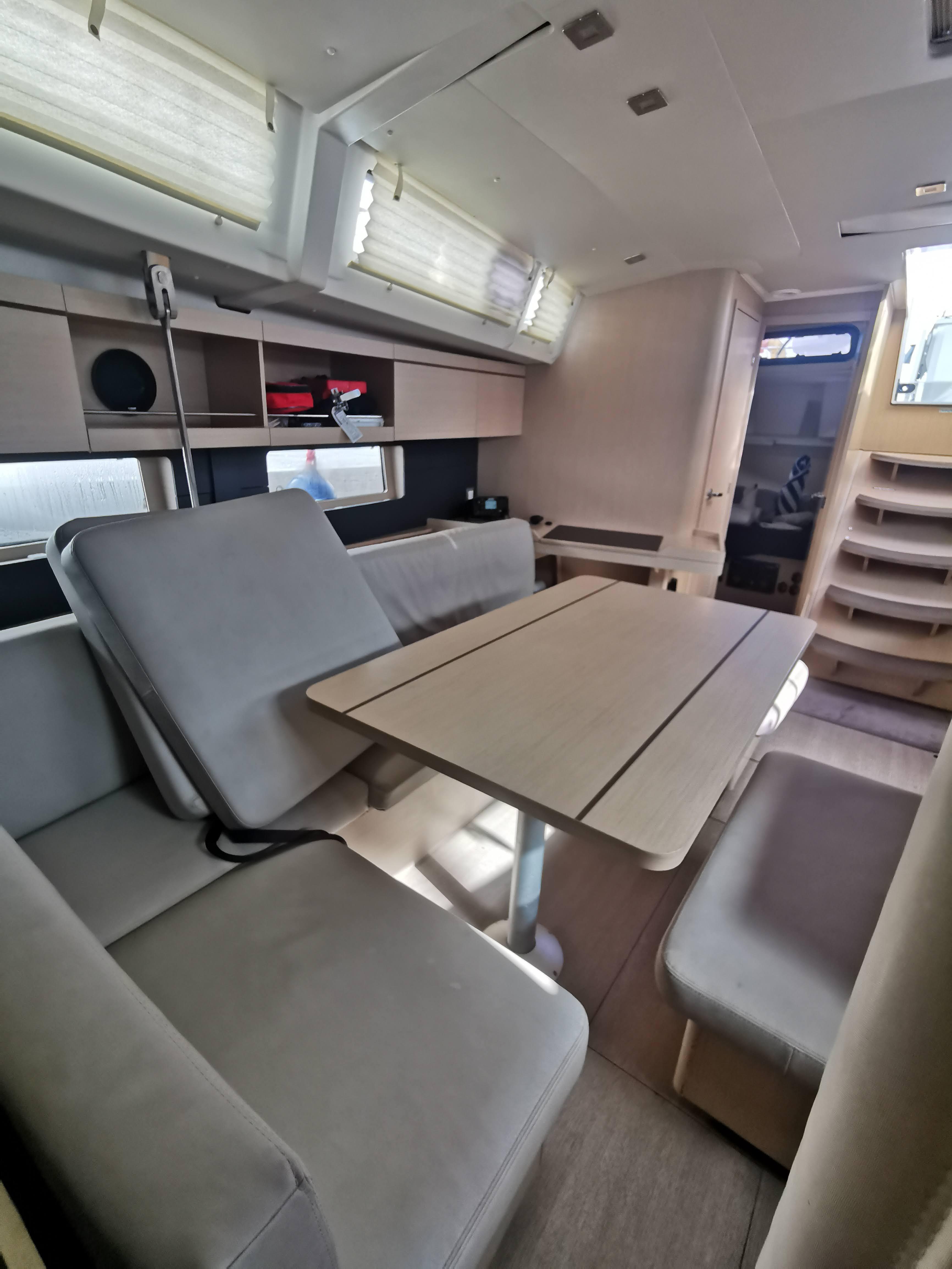 The interior is in the same vein, immediately confirming the impression of quality and good-workmanship created up on deck. The gently sloping companionway ensures safe access down to a bright and modern living space, designed with typically Italian flair for style and comfort by Nauta Design, and which your future crews will certainly be eager to discover.