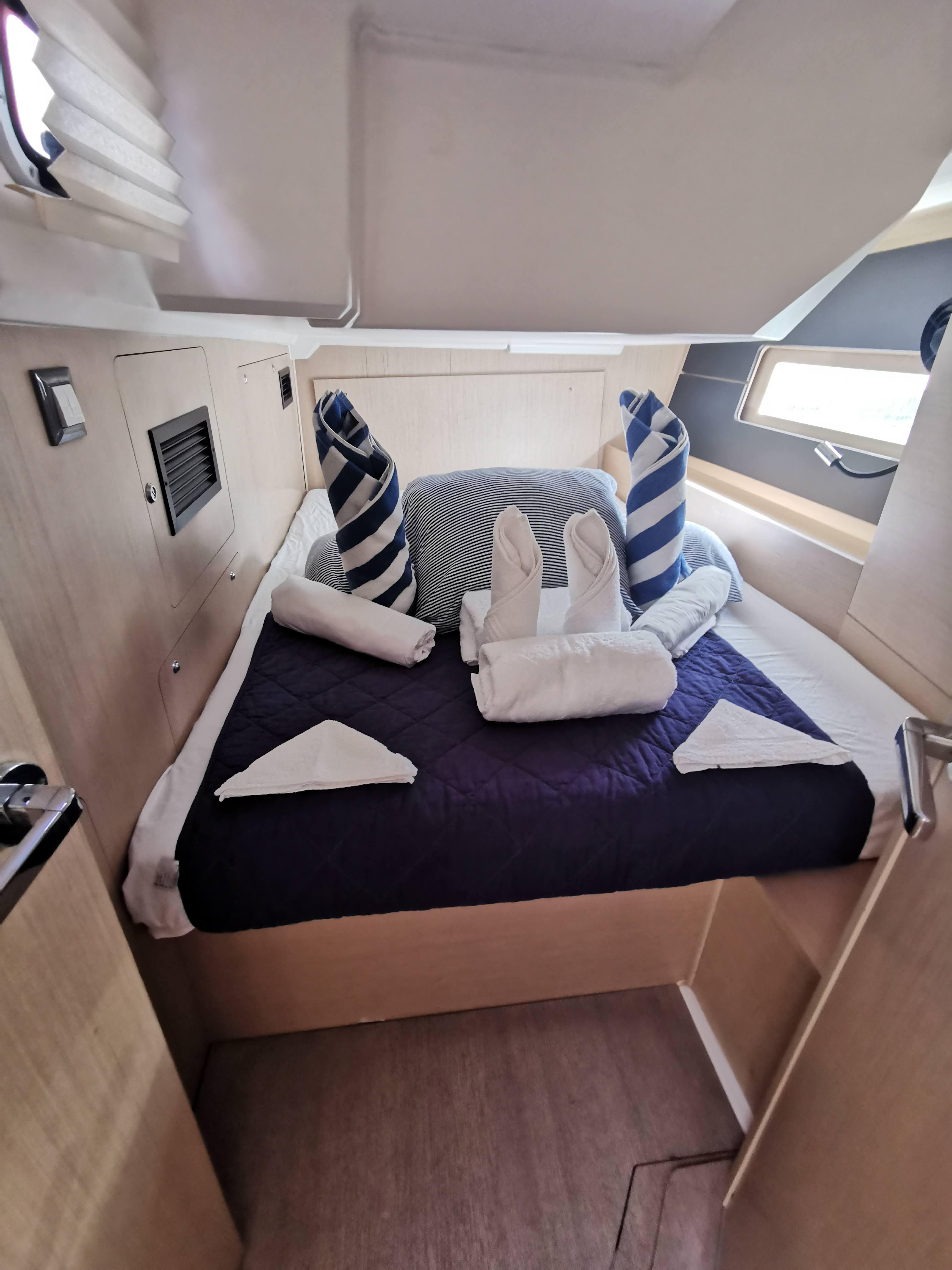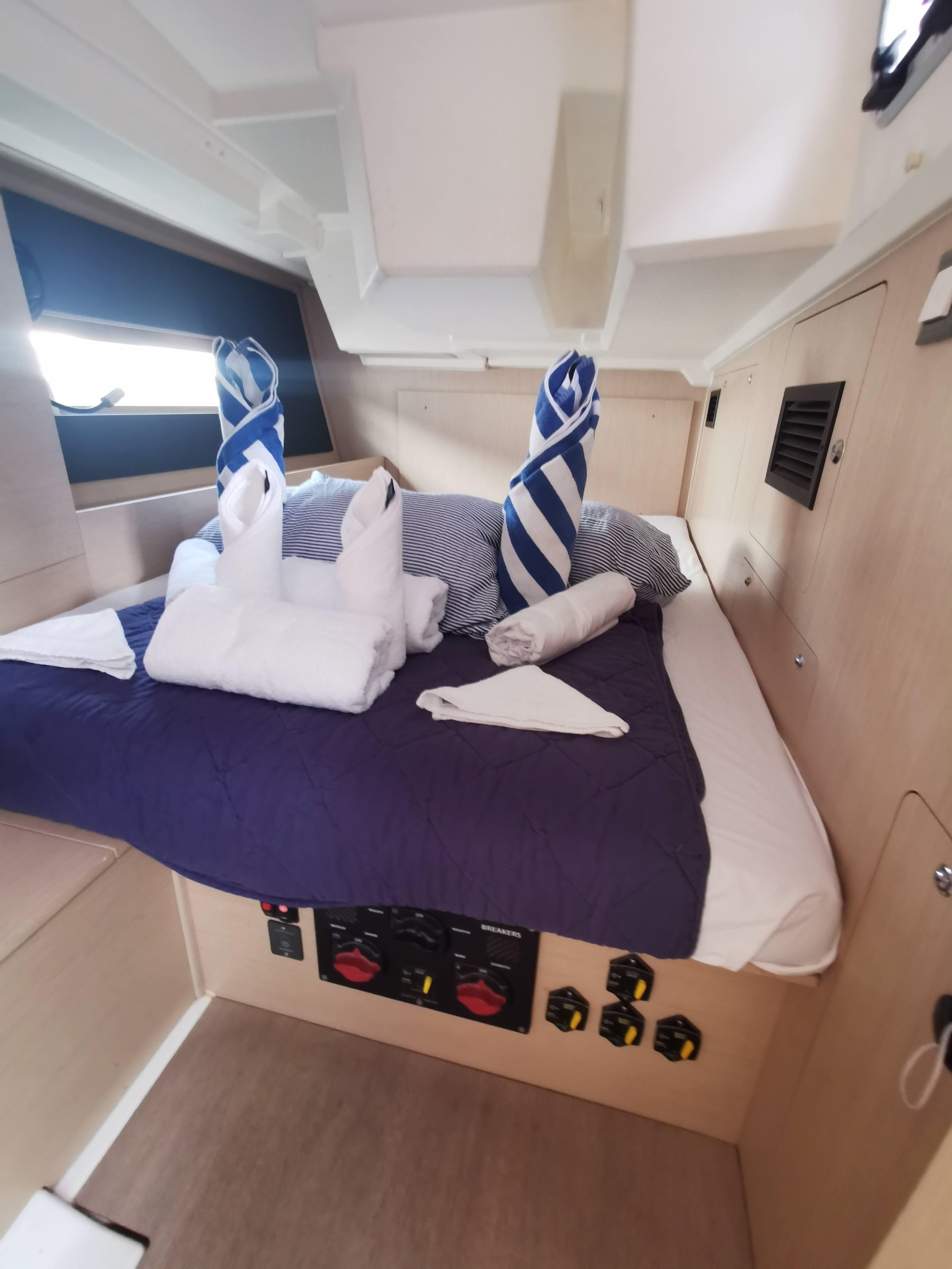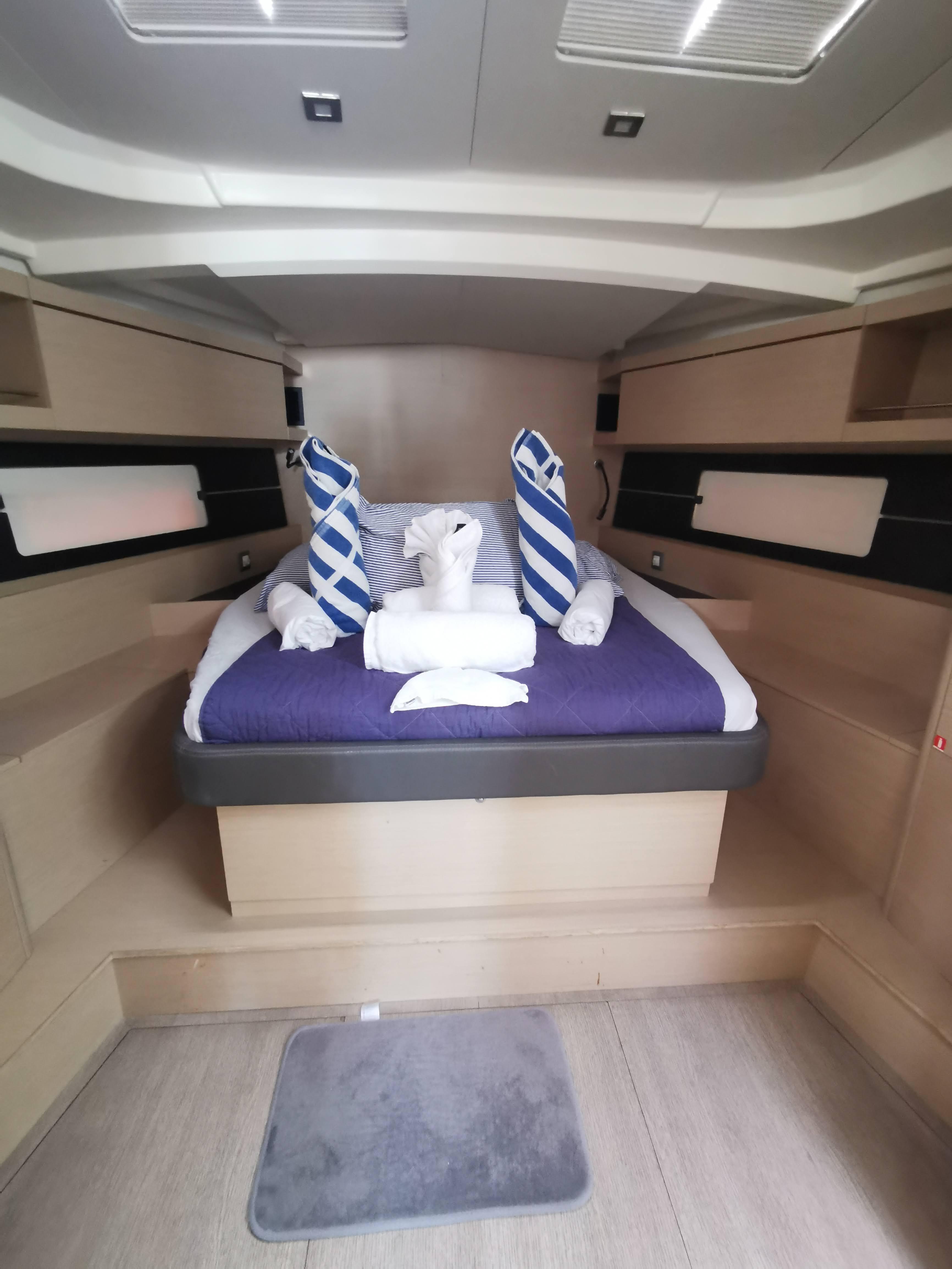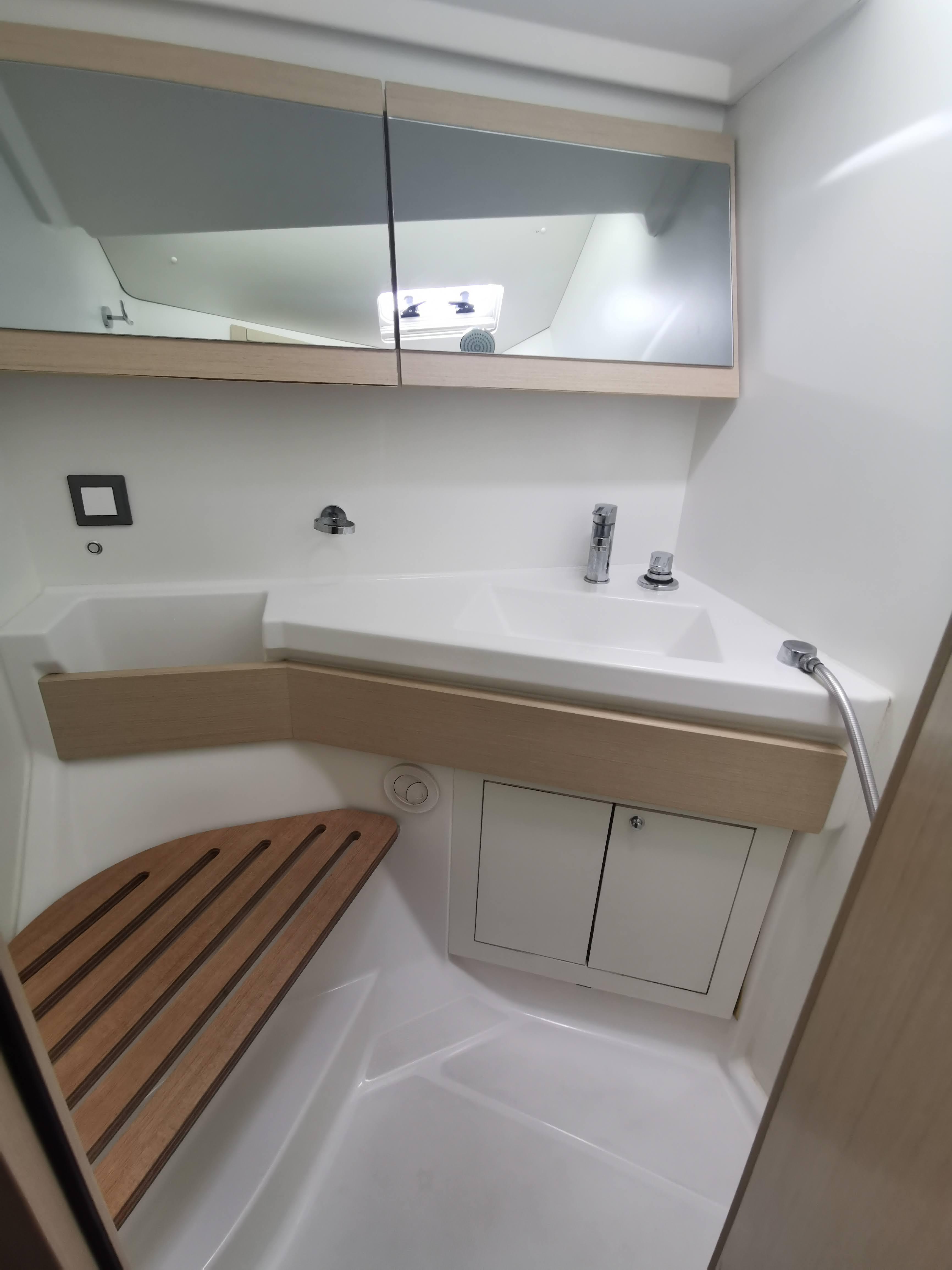 The interior is in the same vein, immediately confirming the impression of quality and good-workmanship created up on deck. The gently sloping companionway ensures safe access down to a bright and modern living space, designed with typically Italian flair for style and comfort by Nauta Design, and which your future crews will certainly be eager to discover.