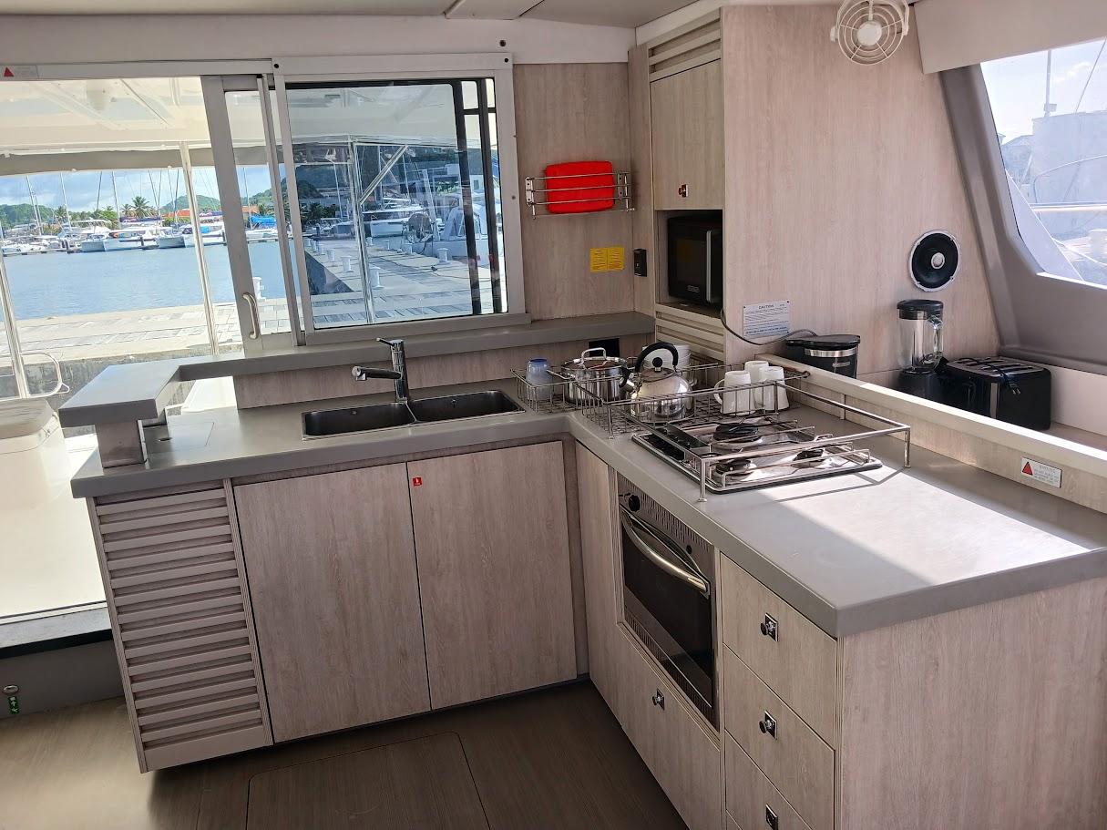Ce bateau dispose également d’un grand salon ouvert, d’une cuisine équipée des derniers appareils électroménagers et d’une disposition en 4 cabines avec salles de bains privatives. Le Leopard 51 Powercat combine le meilleur de notre flotte de voiliers avec le luxe et la facilité d’un bateau à moteur.