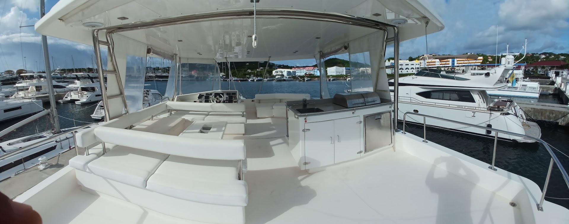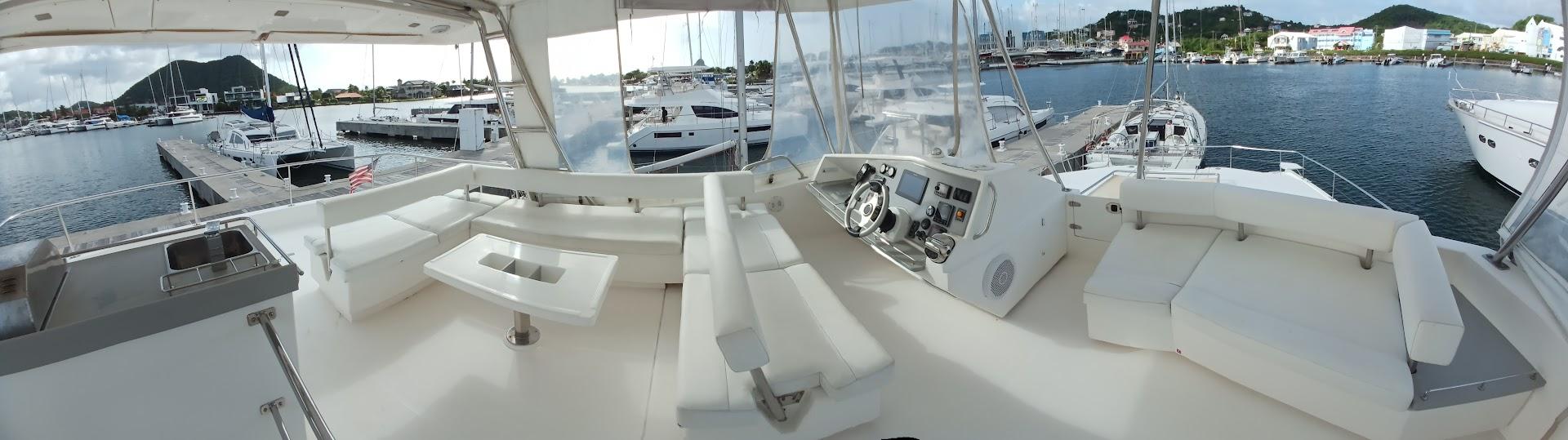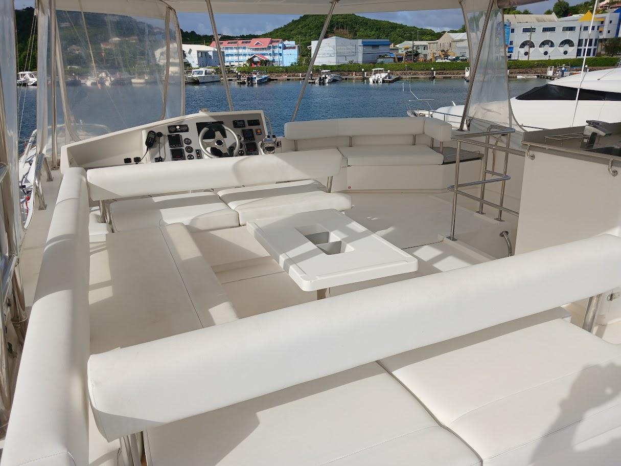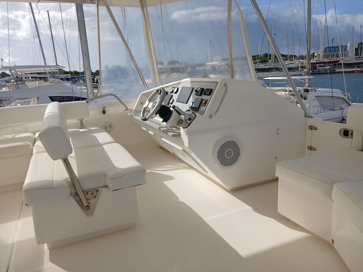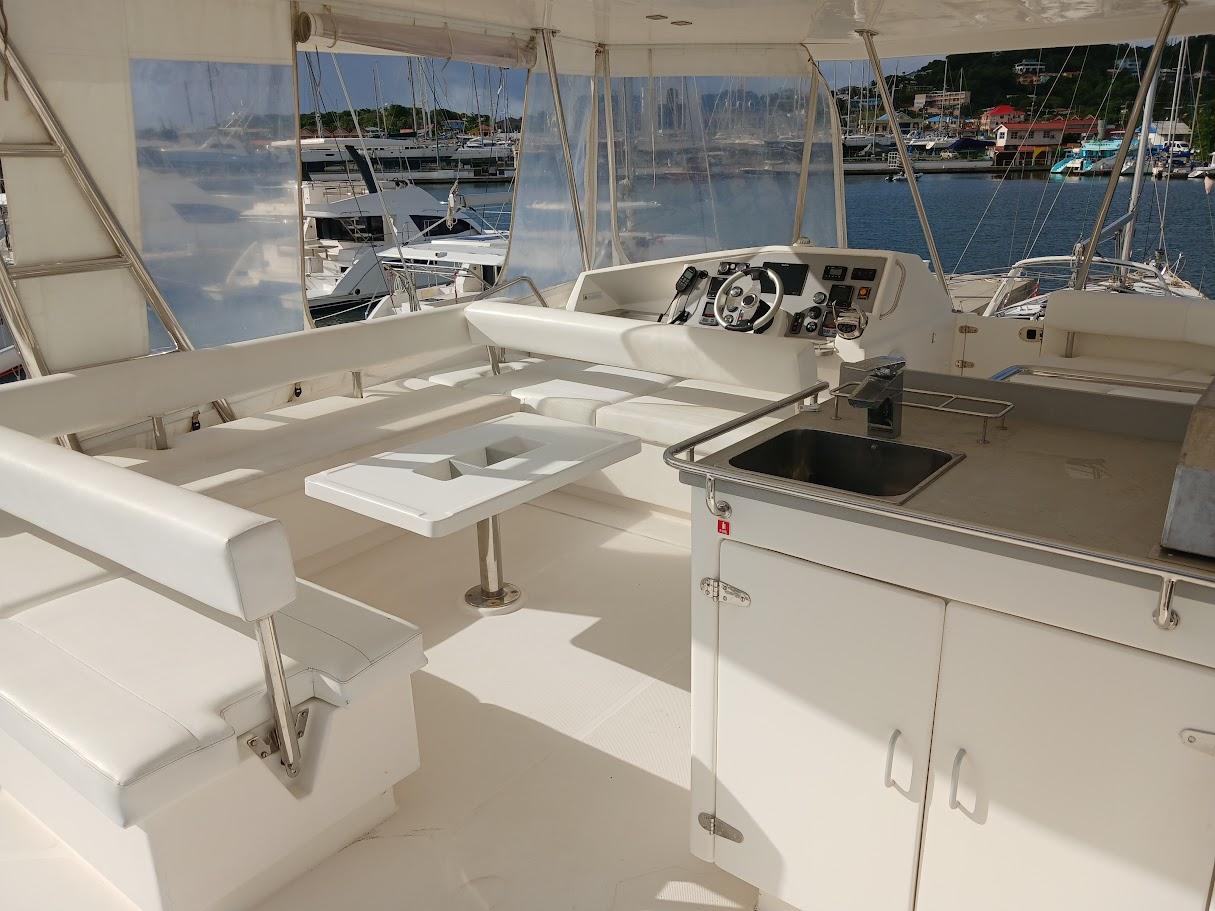 REMARQUES DU COURTIER : BEYOND THE SEA est en très bon état et fait partie des dernières générations à disposer d’une plateforme de bain/anneau électrique. En raison de son âge, il n’y a pas d’antécédents de dommages causés par les ouragans. Grande visibilité et espace sur le flybridge. Les cockpits avant et arrière ainsi que la proue offrent beaucoup d’espace à l’extérieur. La puissance Yanmar, le générateur et l’air conditionné sont fiables et puissants, ce qui en fait un bateau très confortable, économe en carburant et rapide.