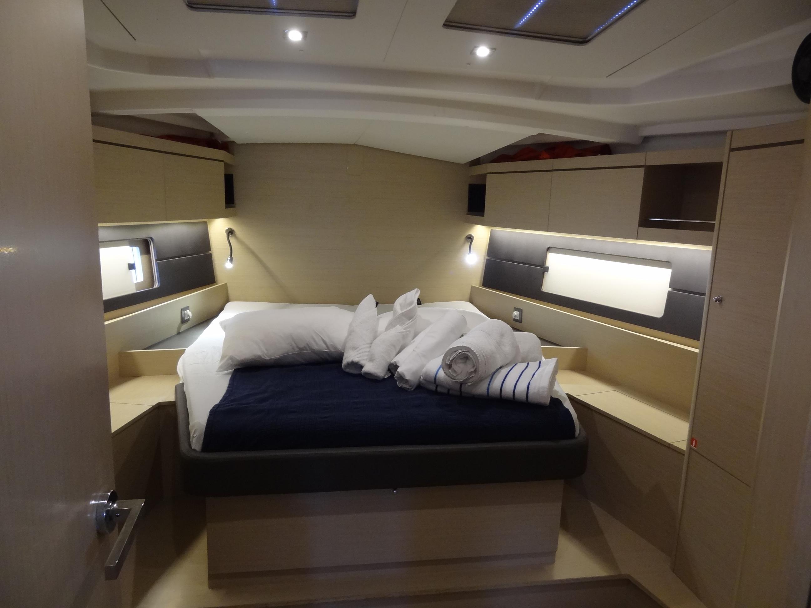 COMMENTAIRE DU CONSTRUCTEUR : Le Moorings 46.3 est un bateau destiné à des propriétaires exigeants, à la recherche d’un bateau de croisière qui mettra en appétit les équipages et les badauds de la marina. Le superbe dessin de la coque est l’œuvre de Finot-Conq, les célèbres architectes navals de Vannes. Ils ont conçu un modèle avec une coque large et performante, caractérisée par un redan inédit au tiers de sa longueur, et qui est dirigée par une paire de safrans jumelés. Le plan de pont épuré et l’élargissement de la coque vers l’arrière assurent au barreur une vision claire et rassurante de ce qui se passe devant lui. L’intérieur est dans la même veine, confirmant immédiatement l’impression de qualité et de bienfacture qui se dégage du pont. la descente en pente douce permet d’accéder en toute sécurité à un espace de vie lumineux et moderne, conçu avec un sens du style et du confort typiquement italien par Nauta Design, et que vos futurs équipages auront certainement à cœur de découvrir.