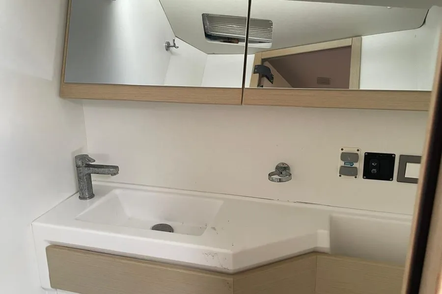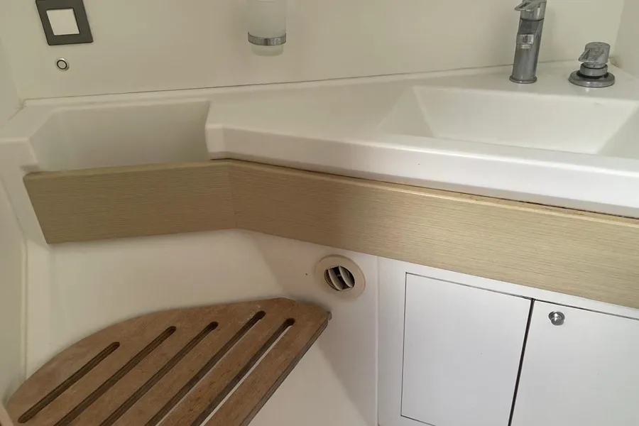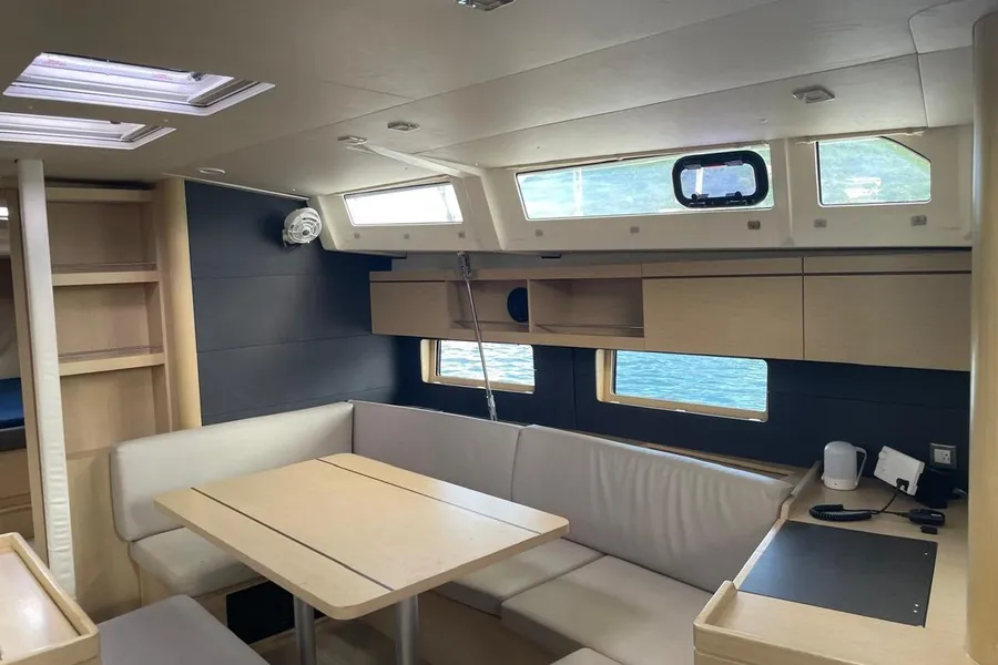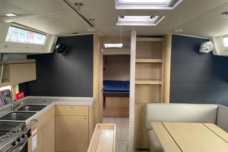 The interior is in the same vein, immediately confirming the impression of quality and good-workmanship created up on deck. The gently sloping companionway ensures safe access down to a bright and modern living space, designed with typically Italian flair for style and comfort by Nauta Design, and which your future crews will certainly be eager to discover.