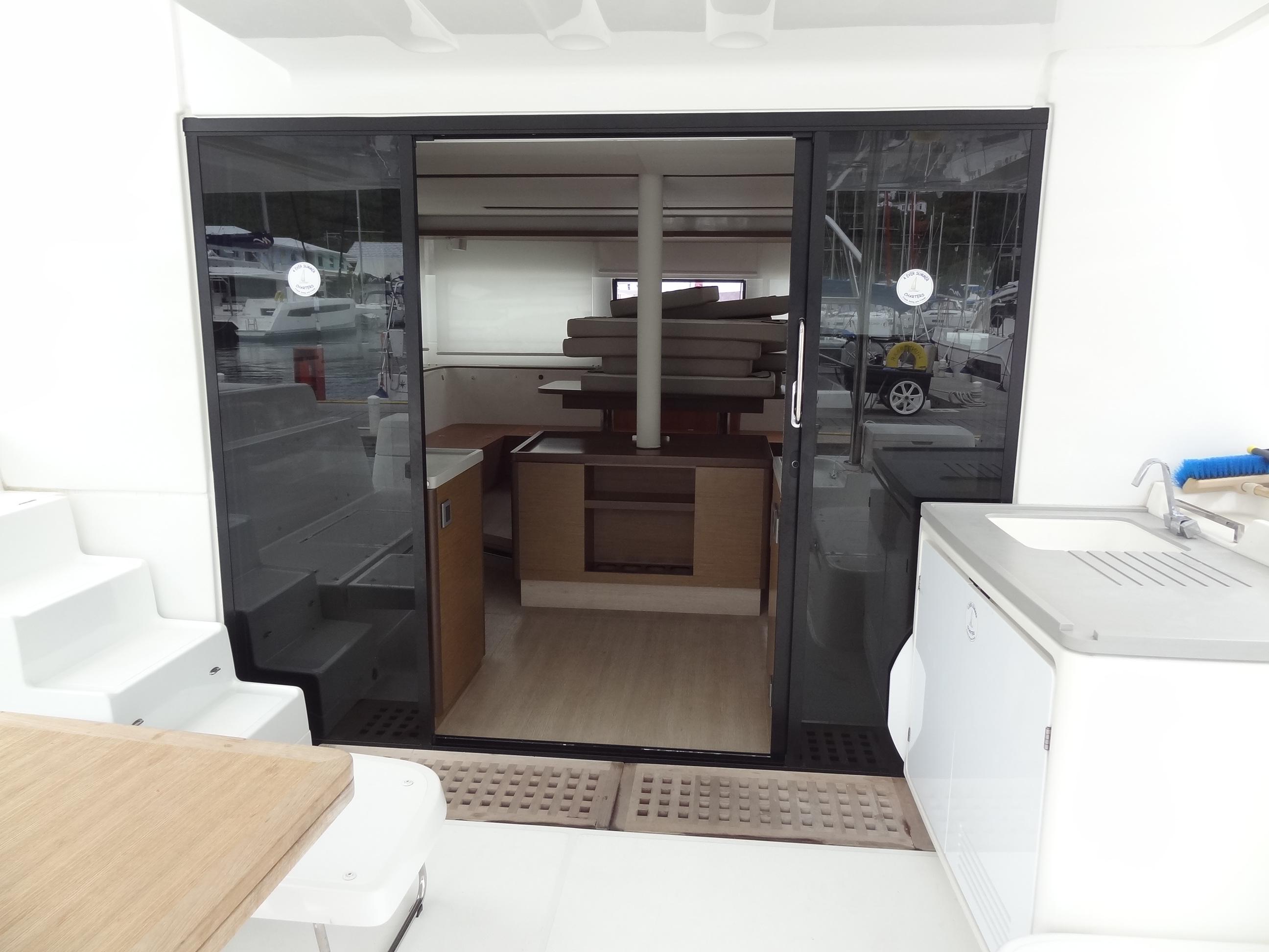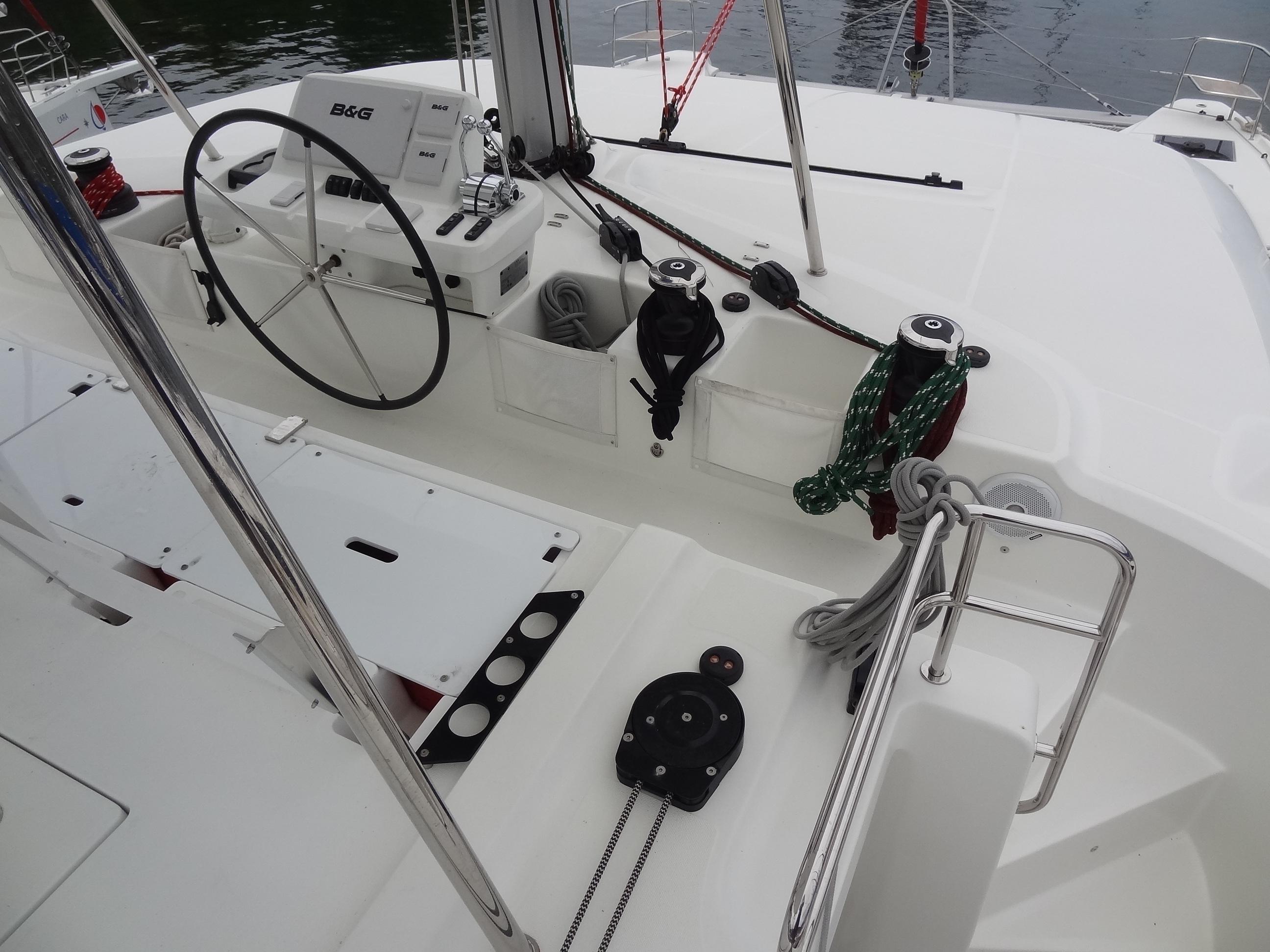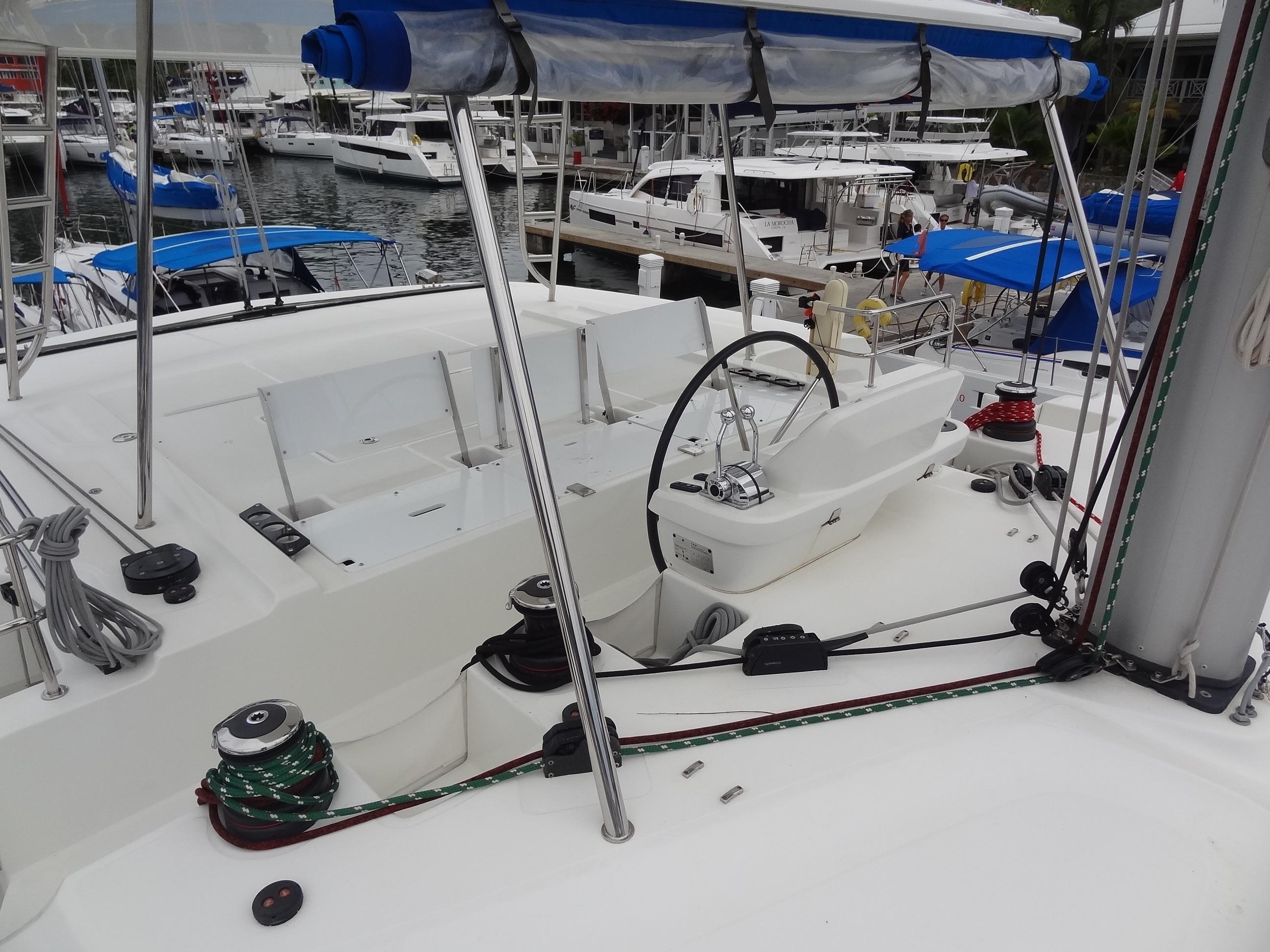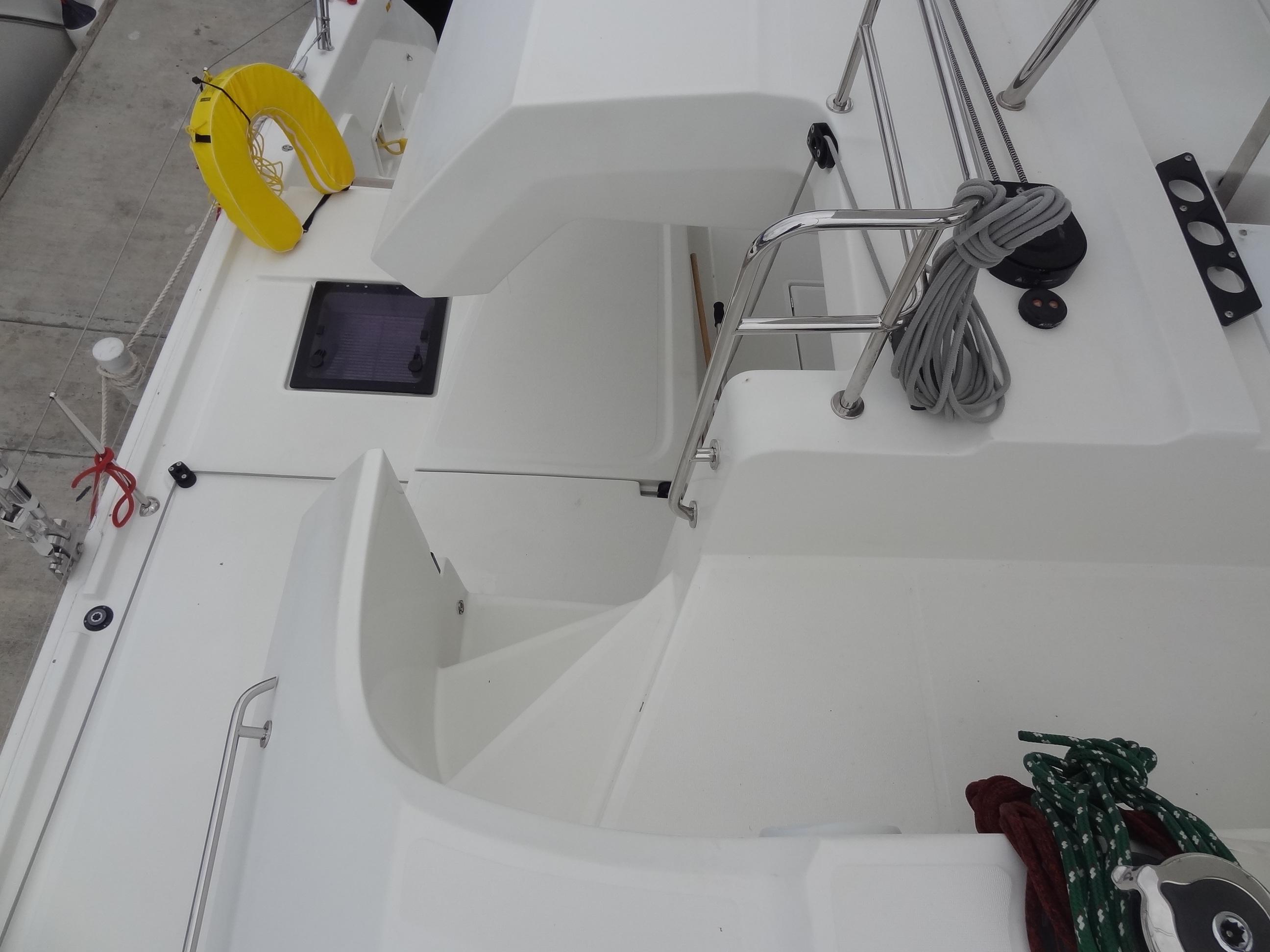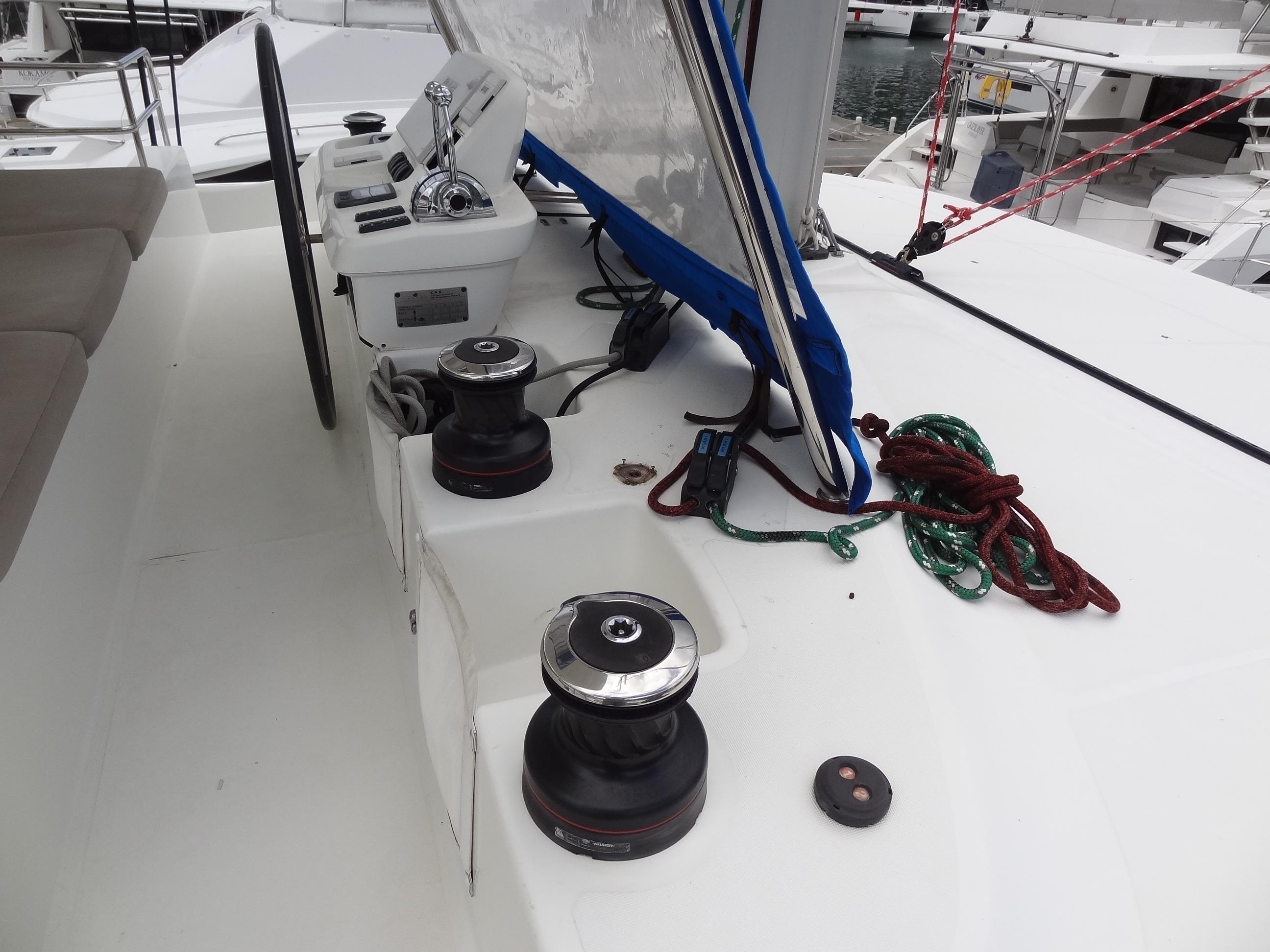 2021 Lagoon 50 – 5 cabines – 4 Ever Summer Remarques du constructeur : Ce nouveau bateau est le compromis parfait entre le modèle emblématique 450 et le 52. Il offre une option attrayante aux navigateurs à la recherche d’un grand bateau « marin et moderne ». Avec sa nouvelle identité visuelle, son gréement et la conception de sa coque, il offre des performances accrues et constitue une signature unique de la marque. En effet, l’élégance du 50 séduit grâce à la forme biseautée de ses coques, ses volumes généreux et ses vues panoramiques, plus que jamais mises en valeur. Avec des possibilités d’aménagement inégalées, ce nouveau modèle est disponible en trois, quatre ou même… six cabines ! EXTÉRIEUR : CONFORTABLE ET FONCTIONNEL Un flybridge avec deux accès sécurisés et un poste de pilotage offre une visibilité parfaite. Et derrière le poste de pilotage, un immense espace de loisirs modulable dissimule un espace de rangement suffisamment grand pour stocker tous les coussins. Un grand cockpit ouvert sur la mer, de larges jupes arrière facilitant l’accès au bateau et un grand espace repas modulable avec des banquettes amovibles pour accueillir aussi bien les enfants que les adultes. Un deuxième cockpit pour profiter davantage du pont avant avec double fonction : position assise ou transat, au ras du trampoline avant. Vaste espace de rangement sous la plupart des sièges du cockpit et du flybridge. INTÉRIEUR : VOLUMES GÉNÉREUX ET LUMINOSITÉ L’aménagement spacieux révèle une architecture innovante où chaque détail a été pensé pour créer une atmosphère chaleureuse et accueillante. La conception permet à chacun de choisir l’aménagement souhaité, avec trois, quatre, cinq ou même six cabines ! Un concept de salon innovant sur deux niveaux, offrant deux espaces séparés mais communicants : une grande cuisine qui s’ouvre sur le cockpit d’un côté, et un salon légèrement surélevé pour une meilleure vue panoramique, qui peut facilement être transformé en salle à manger si nécessaire. Un design intérieur innovant, avec une nouvelle finition en bois élégante et élaborée, personnalisable par le propriétaire. Une communication remarquable entre l’intérieur et l’extérieur : le pare-brise panoramique central est rétractable, ce qui est idéal pour la ventilation du salon et du cockpit. Cela permet une interaction avec la zone avant. Une lumière naturelle exceptionnelle dans les cabines arrière, équipées de vitrages panoramiques et de grands hublots dans les douches et les salles de bains. Volume et confort dans les coques avec une attention particulière portée aux espaces de rangement : cabines avec lits îlots à l’avant et à l’arrière, grands volumes de rangement, penderies et bibliothèques ouvertes. Grands réservoirs d’eau douce et d’eaux usées situés sous le plancher, offrant ainsi un espace considérable. Un réservoir d’eaux grises est disponible en option afin de respecter les normes environnementales. GRÉEMENT NOUVELLE GÉNÉRATION : PERFORMANCE ET SIMPLICITÉ La décision de positionner le pied de mât plus à l’arrière, qui découle directement de l’expérience de VPLP en matière de voile de compétition, confère à ce catamaran de multiples avantages : Un foc auto-vireur pour des manœuvres simplifiées. Un grand triangle avant pour un choix plus large de voiles de vent arrière : une garantie de performance. Un bôme plus court pour des manœuvres plus faciles. Une grand-voile à fort allongement, permettant de mieux capter les courants d’air dans les parties supérieures de la voile pour des performances optimisées. Le recentrage du poids, grâce au positionnement arrière du gréement, réduit considérablement le tangage du bateau. Remarques du courtier : 4 EVER SUMMER est le seul Lagoon 50 de la flotte et il est disponible. Version 5 cabines avec moins d’utilisation et d’heures dans ses premières années en raison du ralentissement de l’activité de location pendant la pandémie de Covid. Le poste de pilotage Lagoon, marque de fabrique de la marque, se distingue particulièrement. Moteurs Yanmar 57 ch, générateur Northern Lights et dessalinisateur Sea Recovery. Disponibilité : Ce bateau peut être vendu avec une phase de retrait OU TEL QUEL / SUR PLACE.