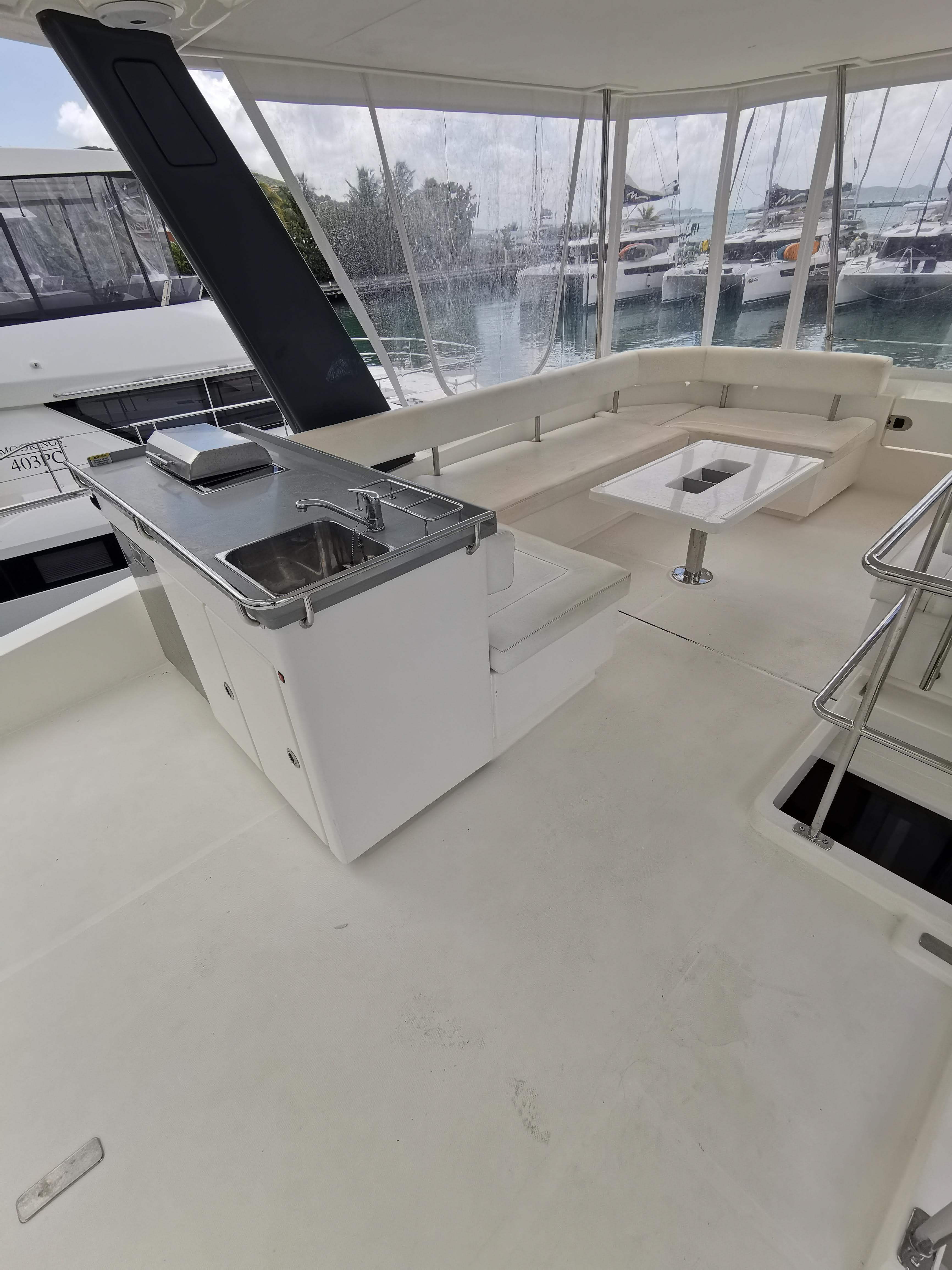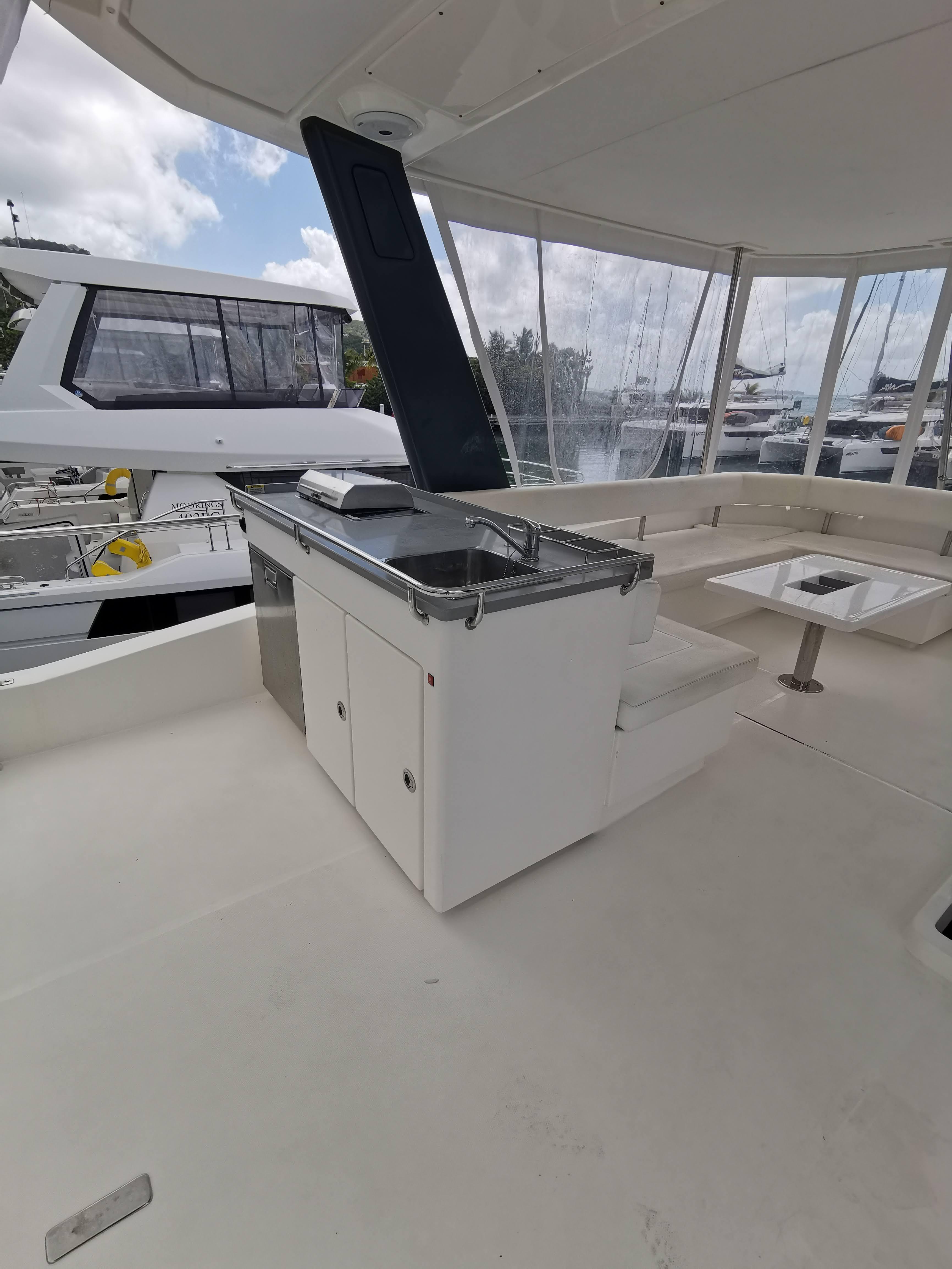 L’augmentation de l’espace de vie intérieur-extérieur favorise une atmosphère conviviale et son design fonctionnel le rend extrêmement facile à utiliser. Que ce soit pour traverser les océans, au mouillage ou sur le pont, ce bateau ne vous décevra pas. Le design de la coque en escalier offre 27% de volume intérieur en plus que son prédécesseur au-dessus de la ligne de flottaison, ce qui permet un logement spacieux dans les coques sans sacrifier les performances du bateau.