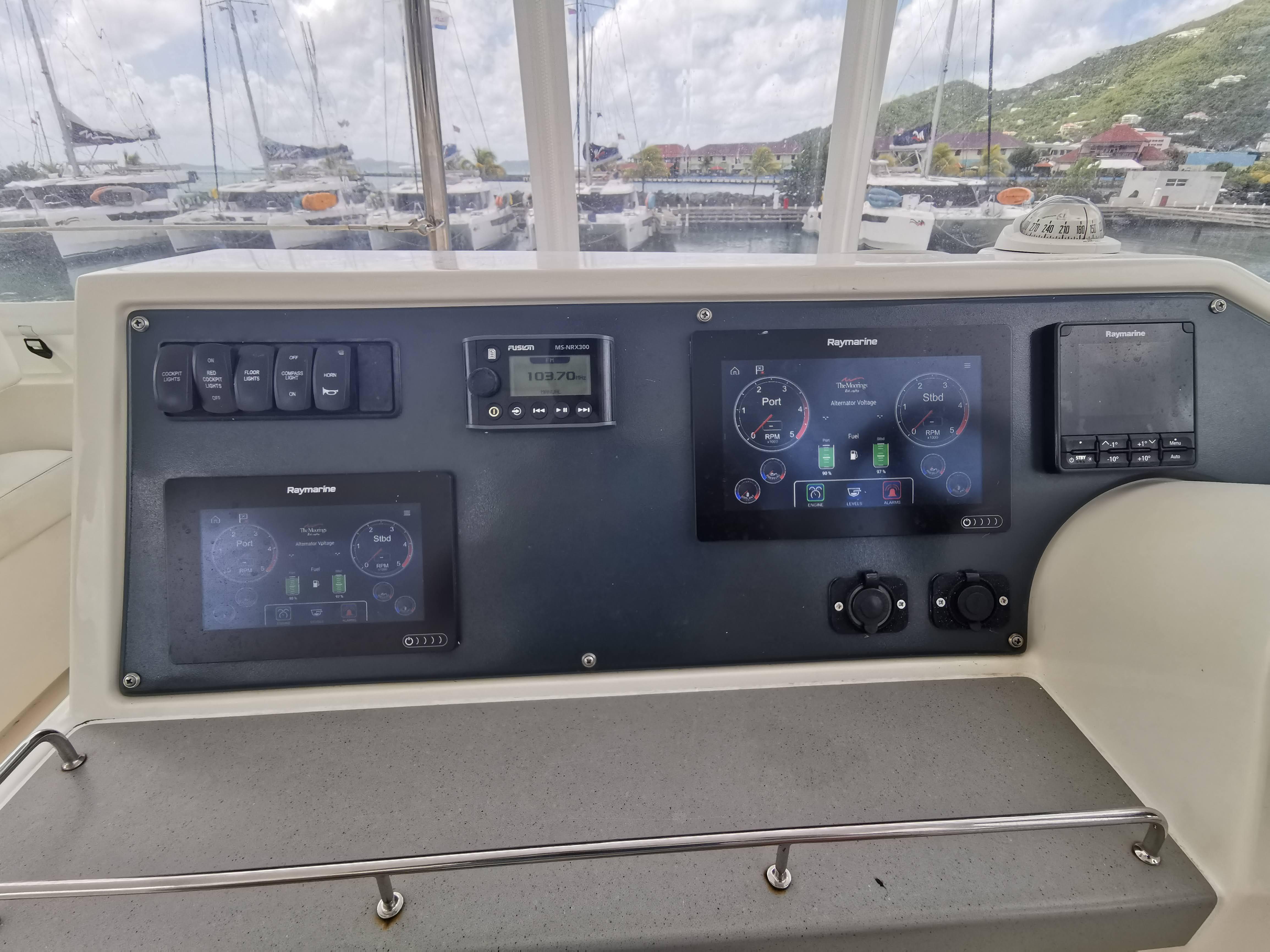 REMARQUES DU CONSTRUCTEUR : Le Leopard 43 PC représente l’avancée majeure de Leopard Catamarans sur le marché des catamarans à moteur. Ce bateau offre des performances de haut niveau et son design est inégalé. L’expérience incroyable que le Leopard 43 PC peut offrir est amplifiée par sa construction, son design, son esthétique et ses capacités. Ce catamaran contemporain est économique, facile à manœuvrer et spacieux. Le nouveau design de sa coque amplifie sa vitesse et son agilité. Profitez des levers et couchers de soleil sur le fly-bridge ou dans le cockpit arrière.