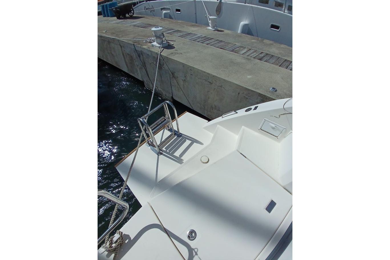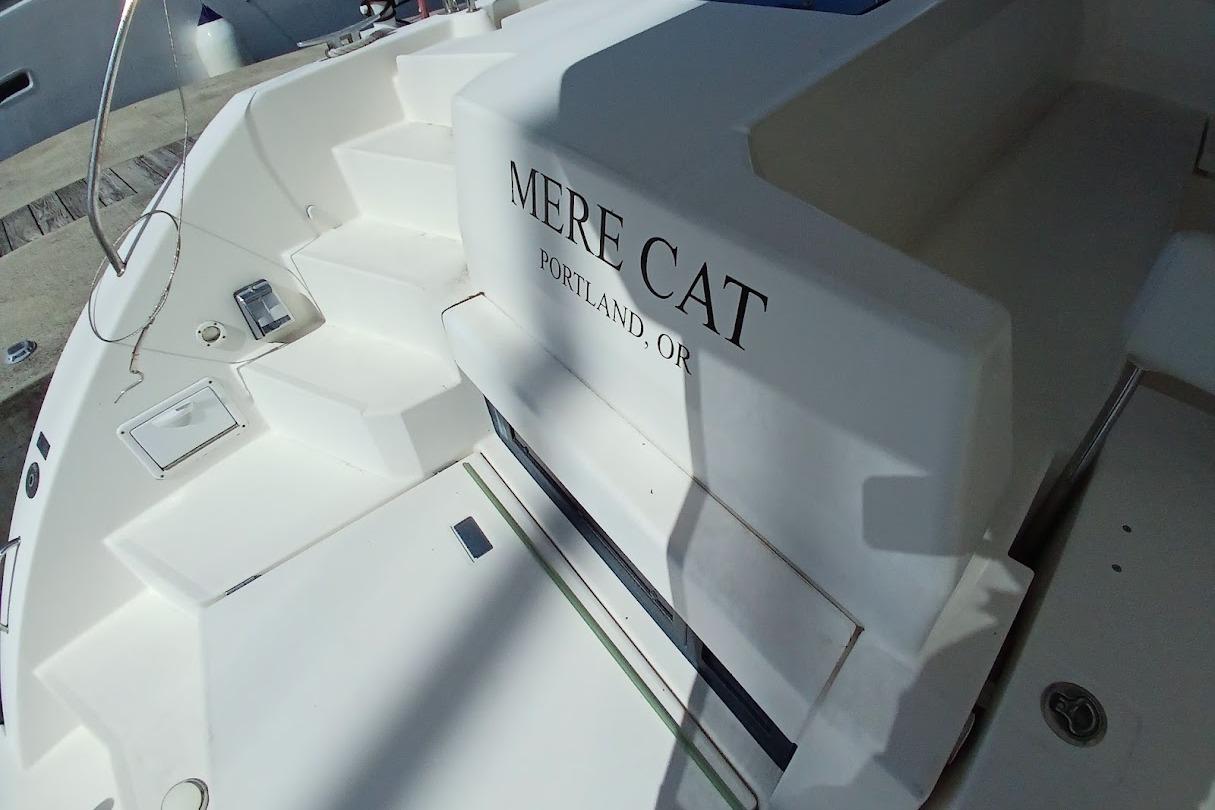 Broker’s Remarks: MERE CAT is finishing up her phase out refit from the fleet and looking in great shape ready to go. Yanmar engines, Northern Lights generator, Air Conditioning, Electric Davits, Forward covered cockpit make up a great package.