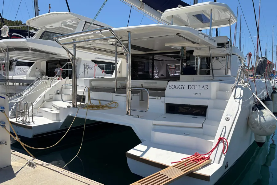 Introducing the stunning 2019 Leopard 45 Catamaran, a remarkable vessel that embodies both elegance and performance. With an overall length of 13.72 meters, this used catamaran is crafted from durable fiberglass, ensuring a robust and reliable sailing experience. Powered by twin Yanmar 4JH45 inboard engines, each delivering 45 hp, it promises a powerful and efficient journey on the water. The electric windlass adds convenience, making anchoring a breeze. Designed for comfort, the Leopard 45 features four spacious cabins and four heads, providing ample accommodation for family and friends. This catamaran is perfect for those seeking adventure and relaxation alike. Whether you’re exploring coastal waters or enjoying a leisurely cruise, the SOGGY DOLLAR is ready to deliver unforgettable experiences on the open sea. Embrace the freedom of sailing with this exceptional vessel!