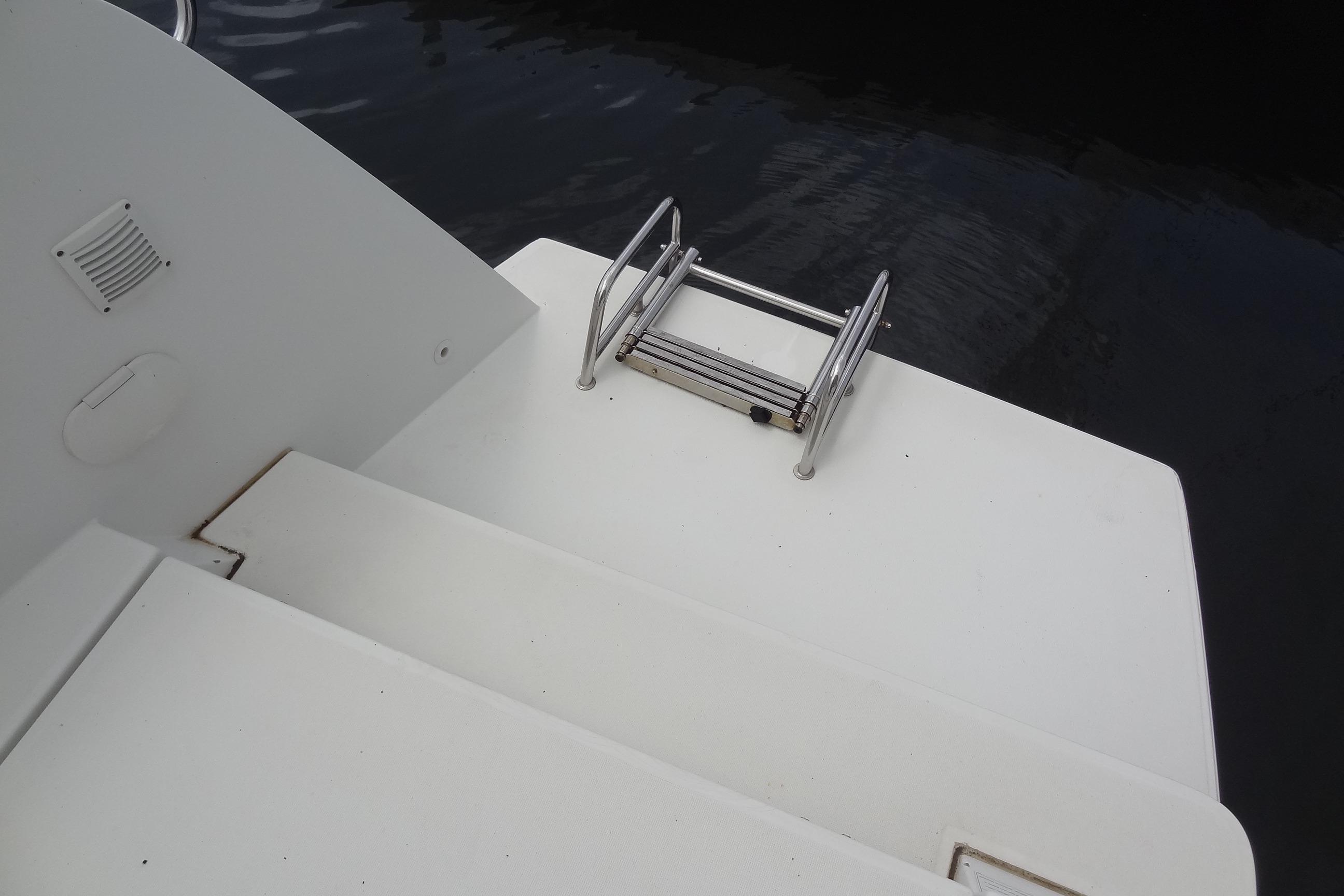 – The suspended steps at the transom provide a whole new perception of the boat: a continuous, wide and inviting platform, worthy of a large vessel.