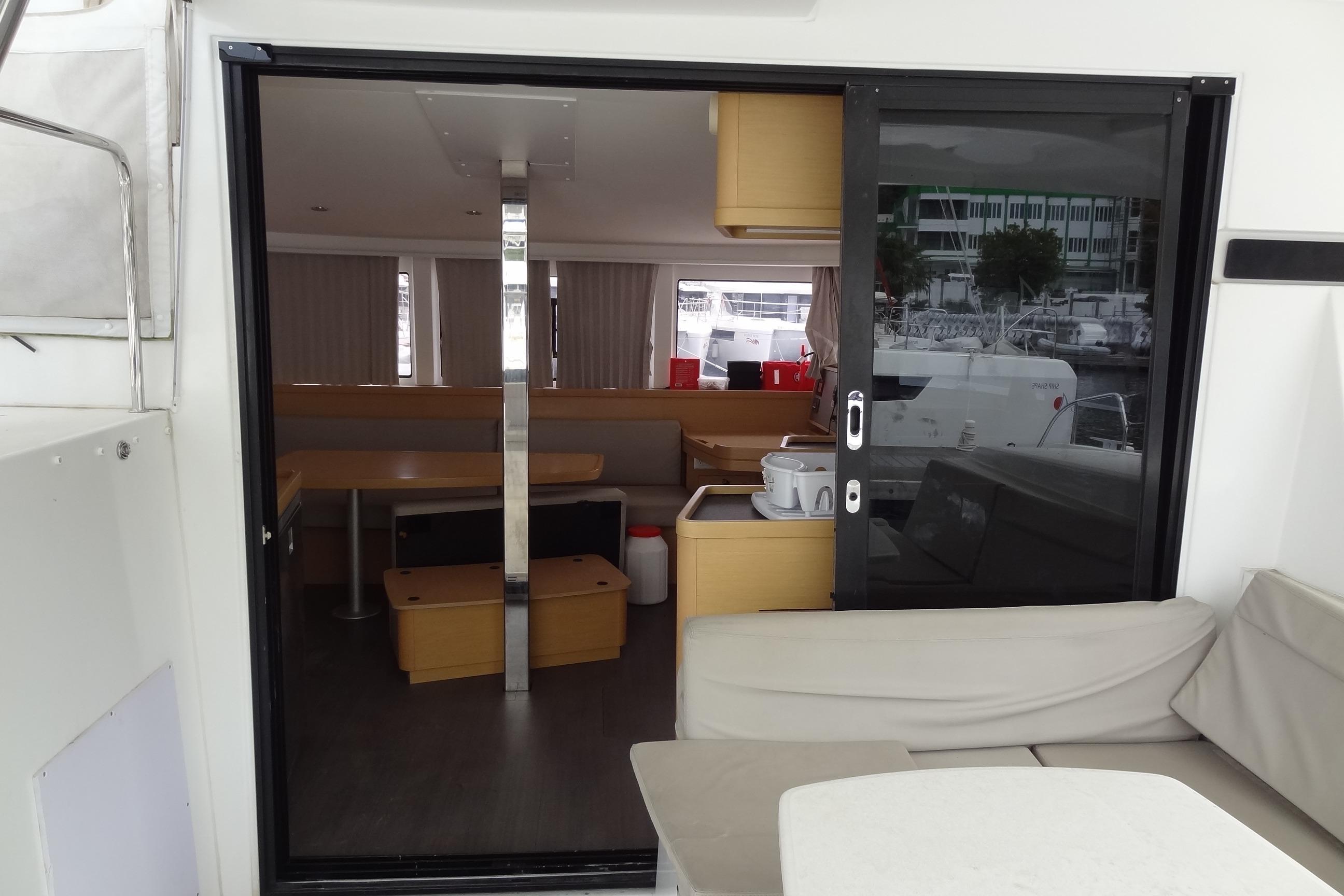 – a large glazed door that occupies the entire width of the coachroof, and provides access to the unparalleled internal volumes.