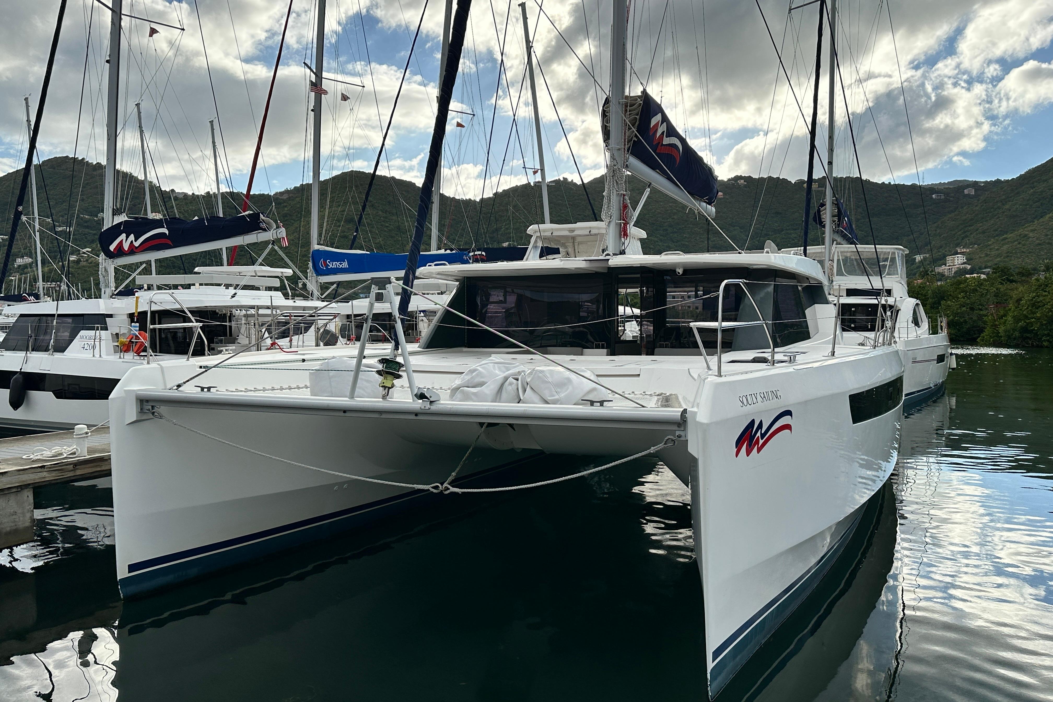 BROKERS REMARKS: SOULY SAILING has the 4-cabin layout with the starboard aft cabin being the largest with walk in shower owners cabin layout. Being a 2021 model means it has not experienced any hurricane activity in her history and less overall usage with Covid down time last years. The forward cockpit and bright airy interior are the points that are most noted on viewing. This boat has the lighter ash interior and all the other great features of the 50. Forward seating area, lounge on the hardtop, Yanmar engines, Northern Lights generator and air conditioning.