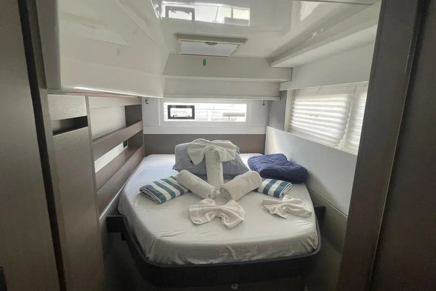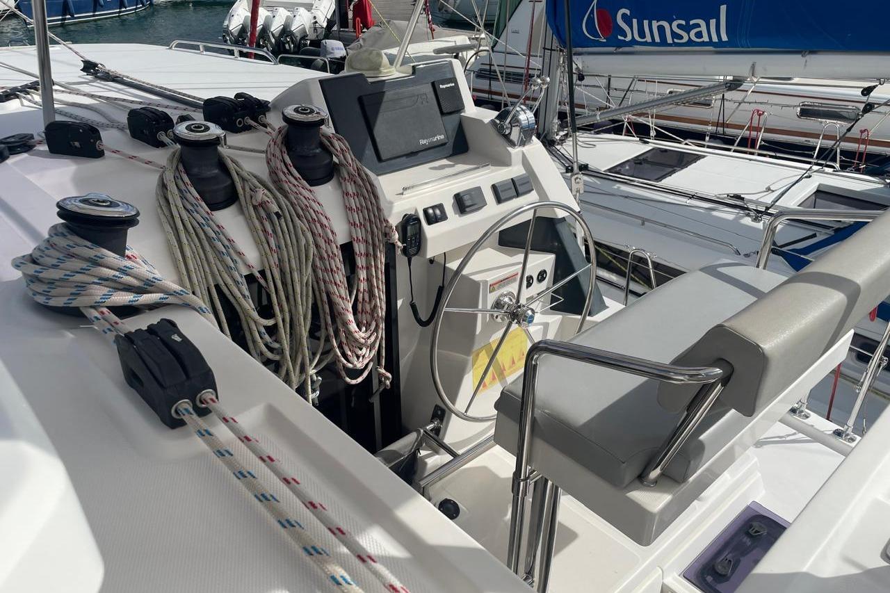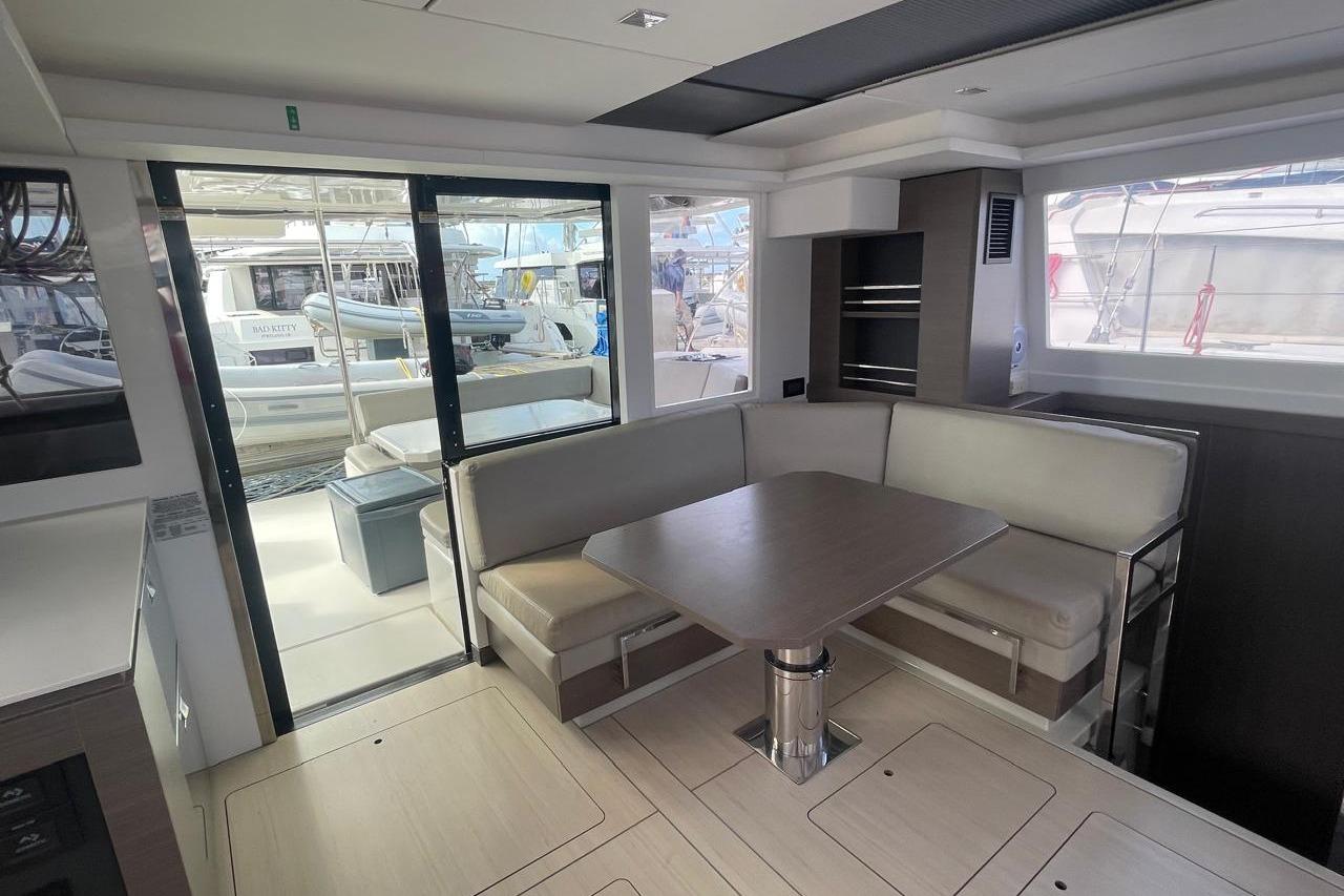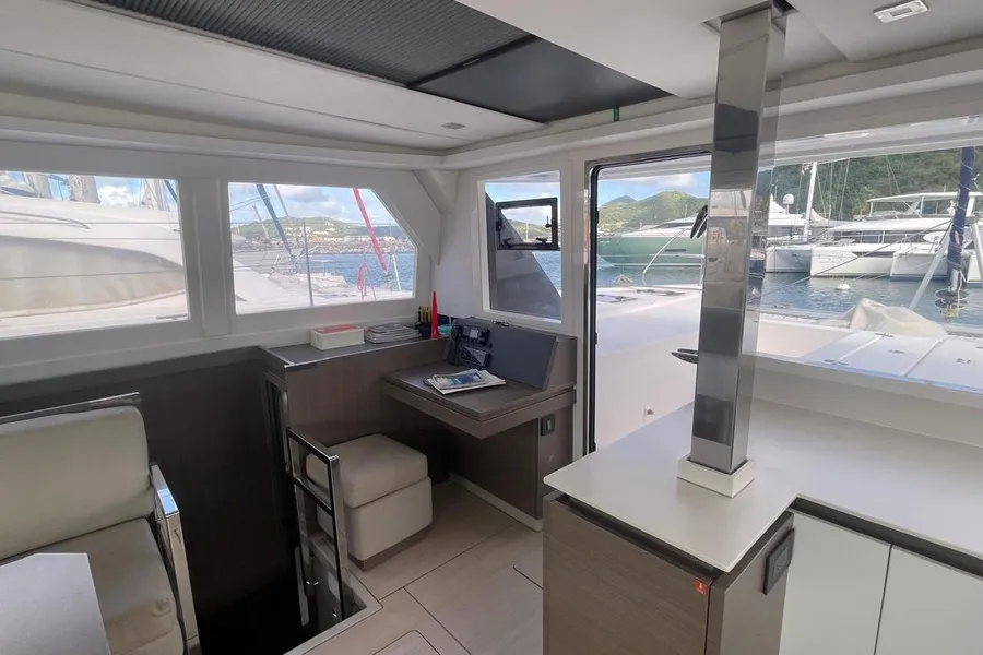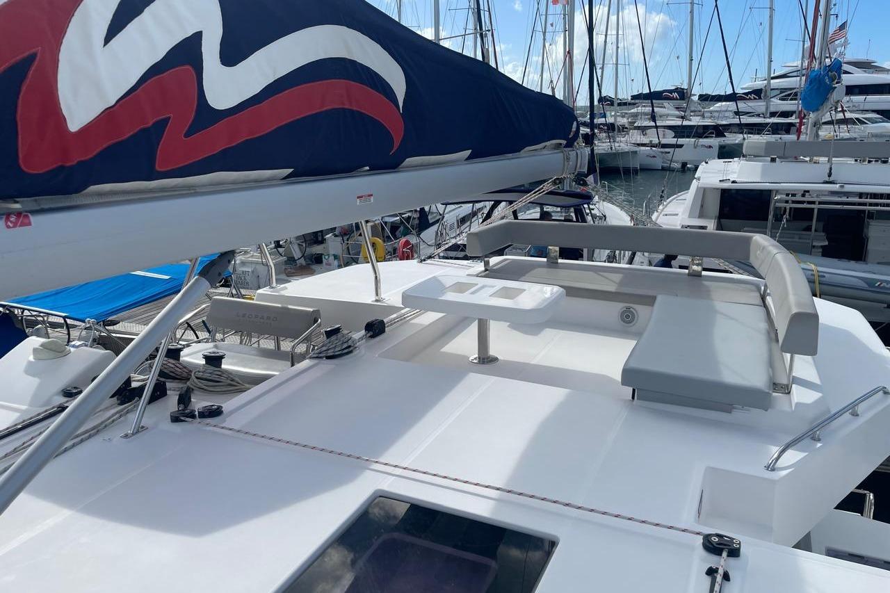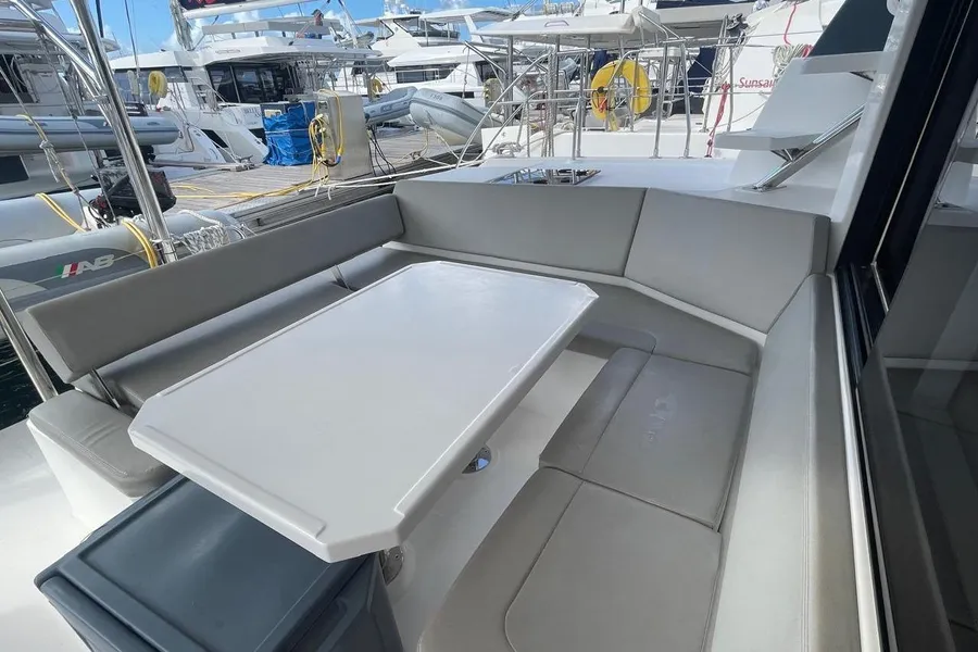 BROKERS REMARKS: SAGITTA is the first of the 42’s to come available leaving the fleet with limited numbers available in 2026. She is a 3 cabin 3 head owner layout with starboard side hull setup as the owners cabin. Has the latest interior scheme along with air conditioning, generator, watermaker, inverter, Yanmar engines, electric davits, walk through forward door and the upper lounge on the hardtop. Low hours than might usually see if some down time in Covid period. Located in St Martin a great place to start out in the Caribbean.