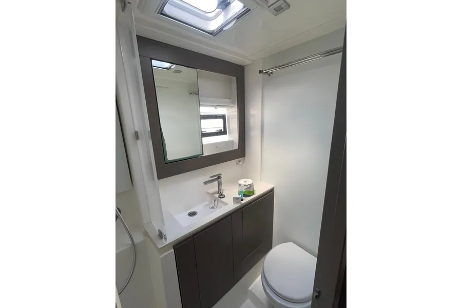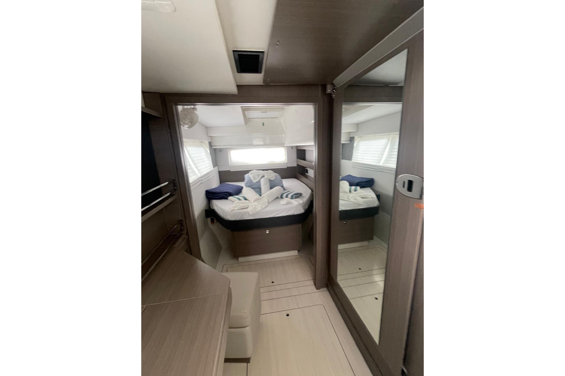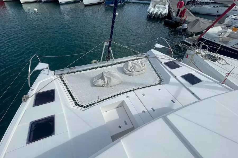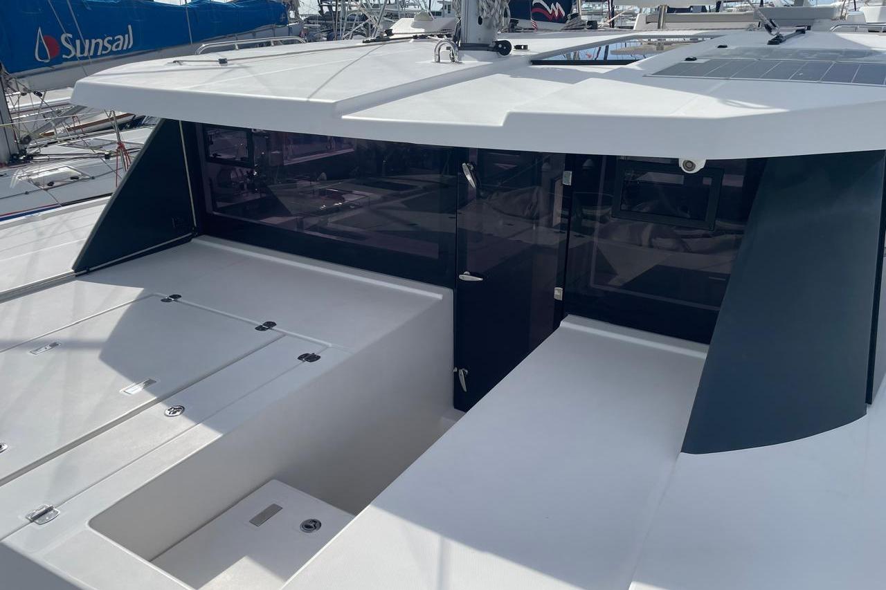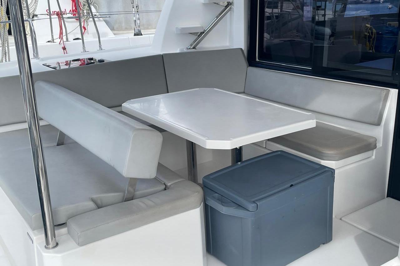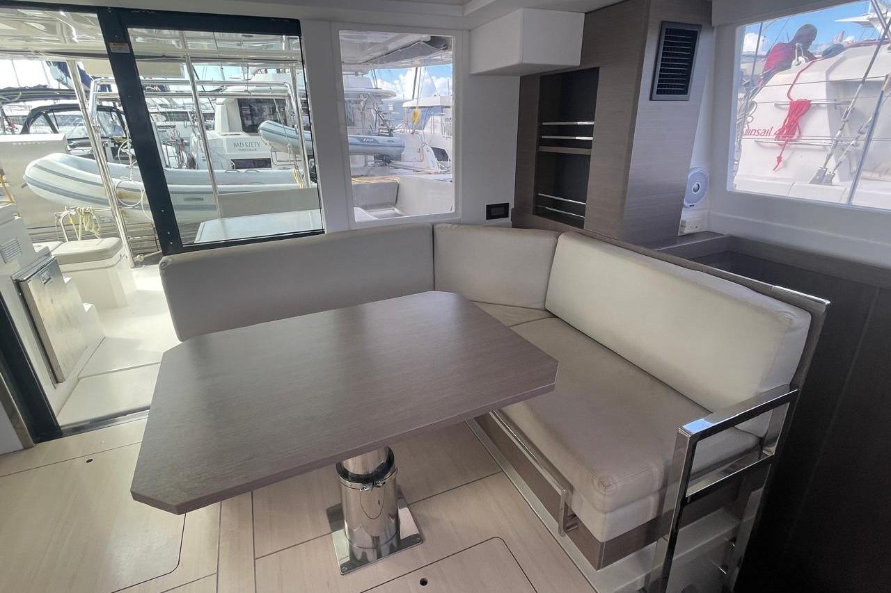 BROKERS REMARKS: SAGITTA is the first of the 42’s to come available leaving the fleet with limited numbers available in 2026. She is a 3 cabin 3 head owner layout with starboard side hull setup as the owners cabin. Has the latest interior scheme along with air conditioning, generator, watermaker, inverter, Yanmar engines, electric davits, walk through forward door and the upper lounge on the hardtop. Low hours than might usually see if some down time in Covid period. Located in St Martin a great place to start out in the Caribbean.