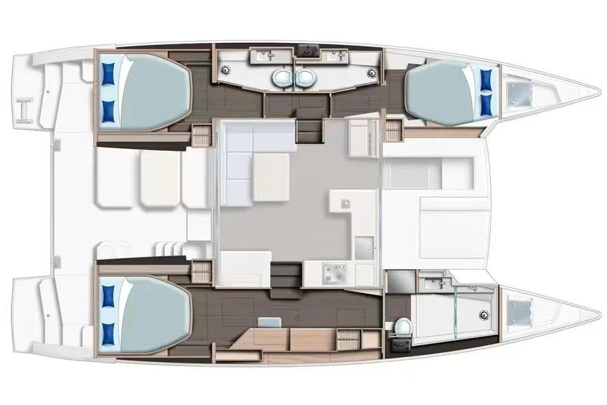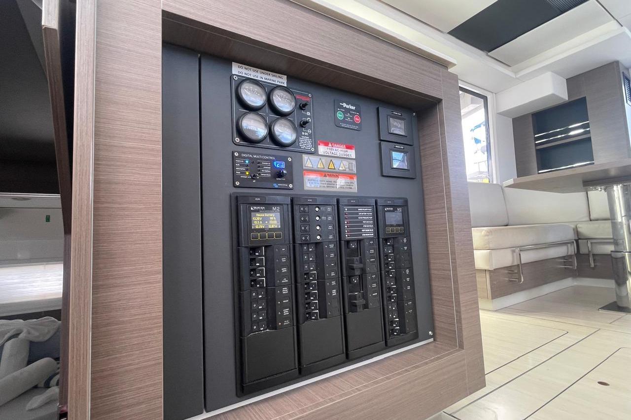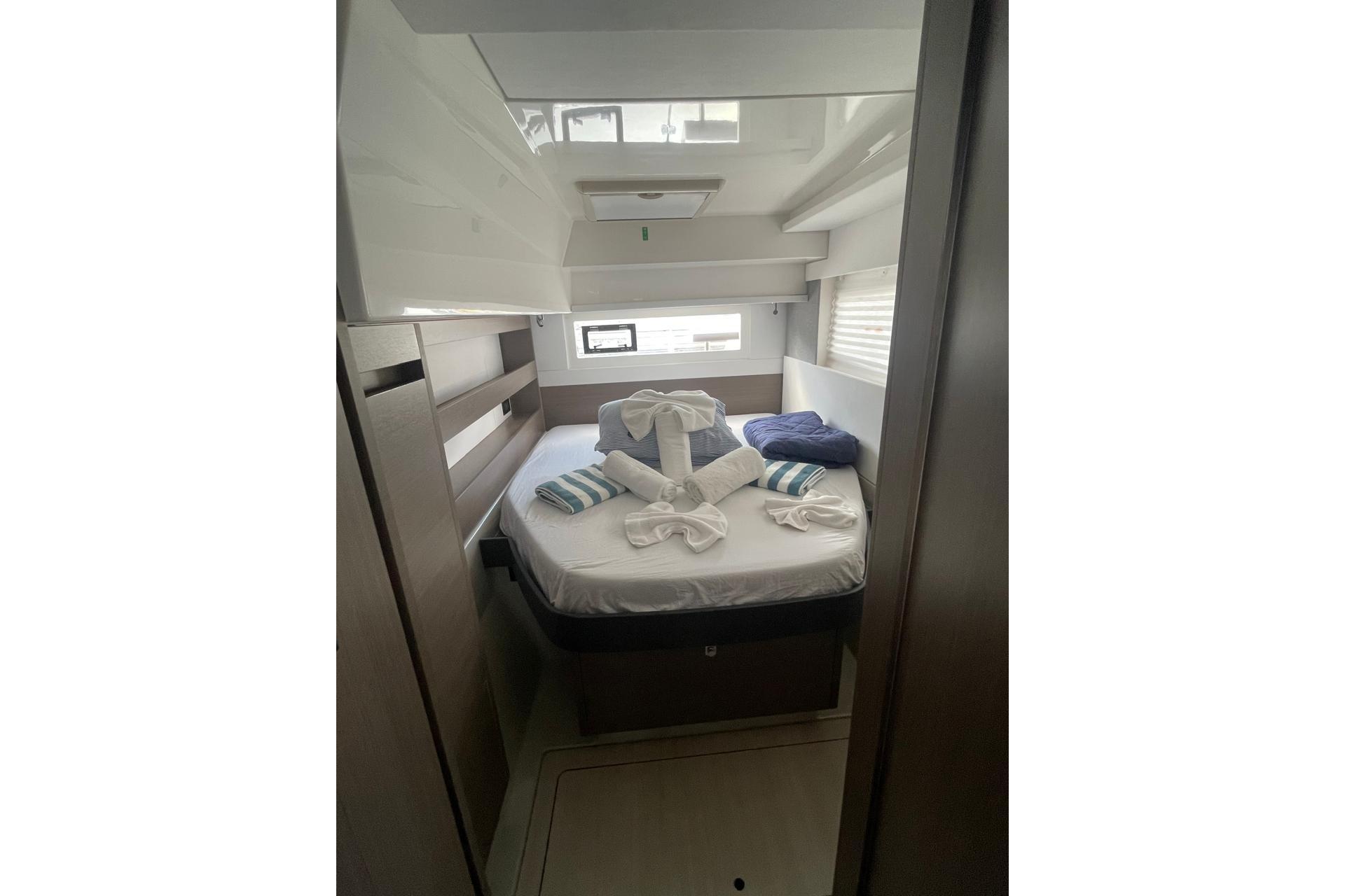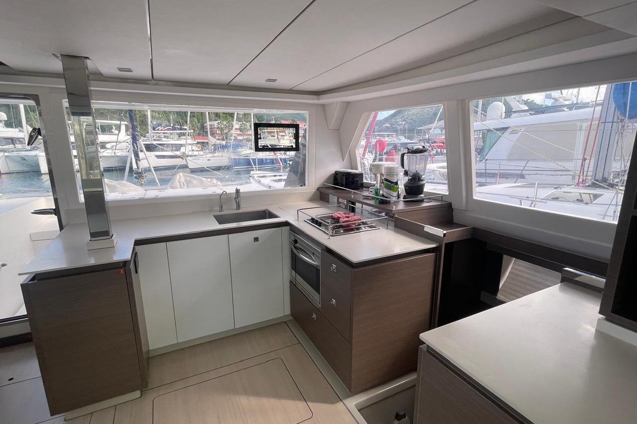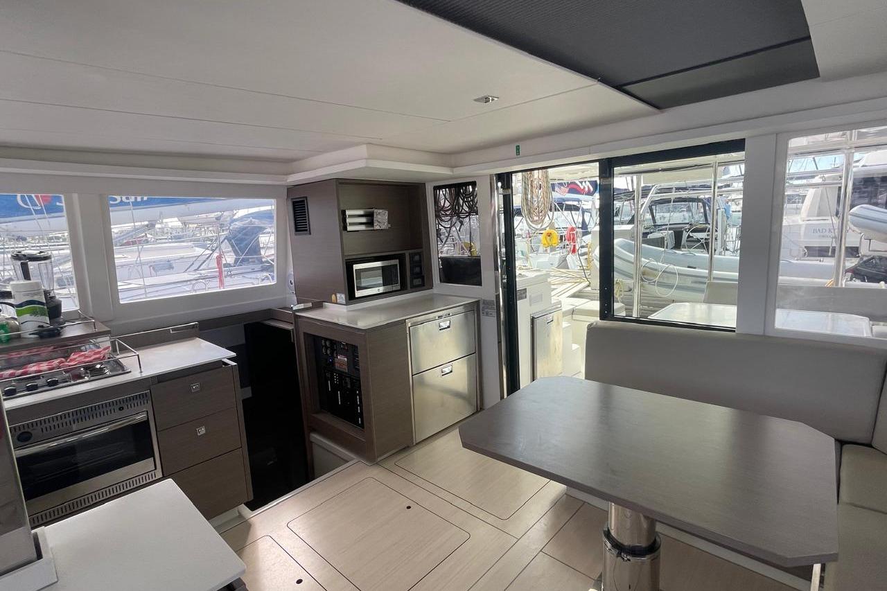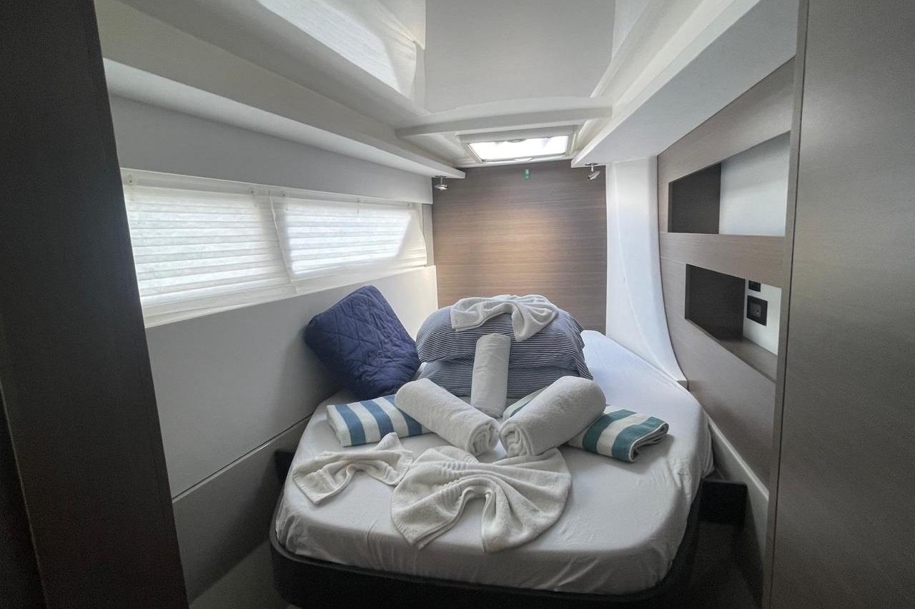 BROKERS REMARKS: SAGITTA is the first of the 42’s to come available leaving the fleet with limited numbers available in 2026. She is a 3 cabin 3 head owner layout with starboard side hull setup as the owners cabin. Has the latest interior scheme along with air conditioning, generator, watermaker, inverter, Yanmar engines, electric davits, walk through forward door and the upper lounge on the hardtop. Low hours than might usually see if some down time in Covid period. Located in St Martin a great place to start out in the Caribbean.