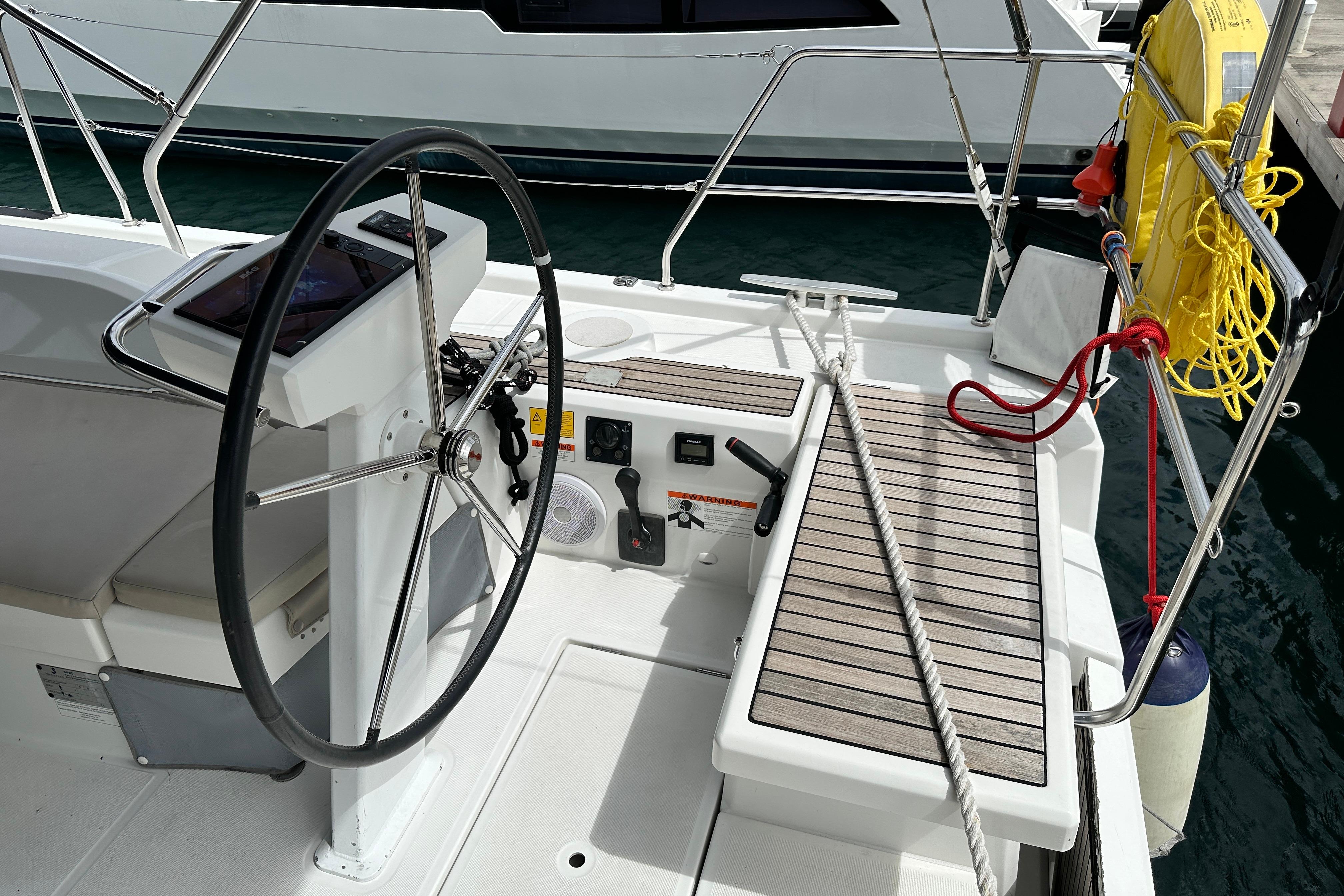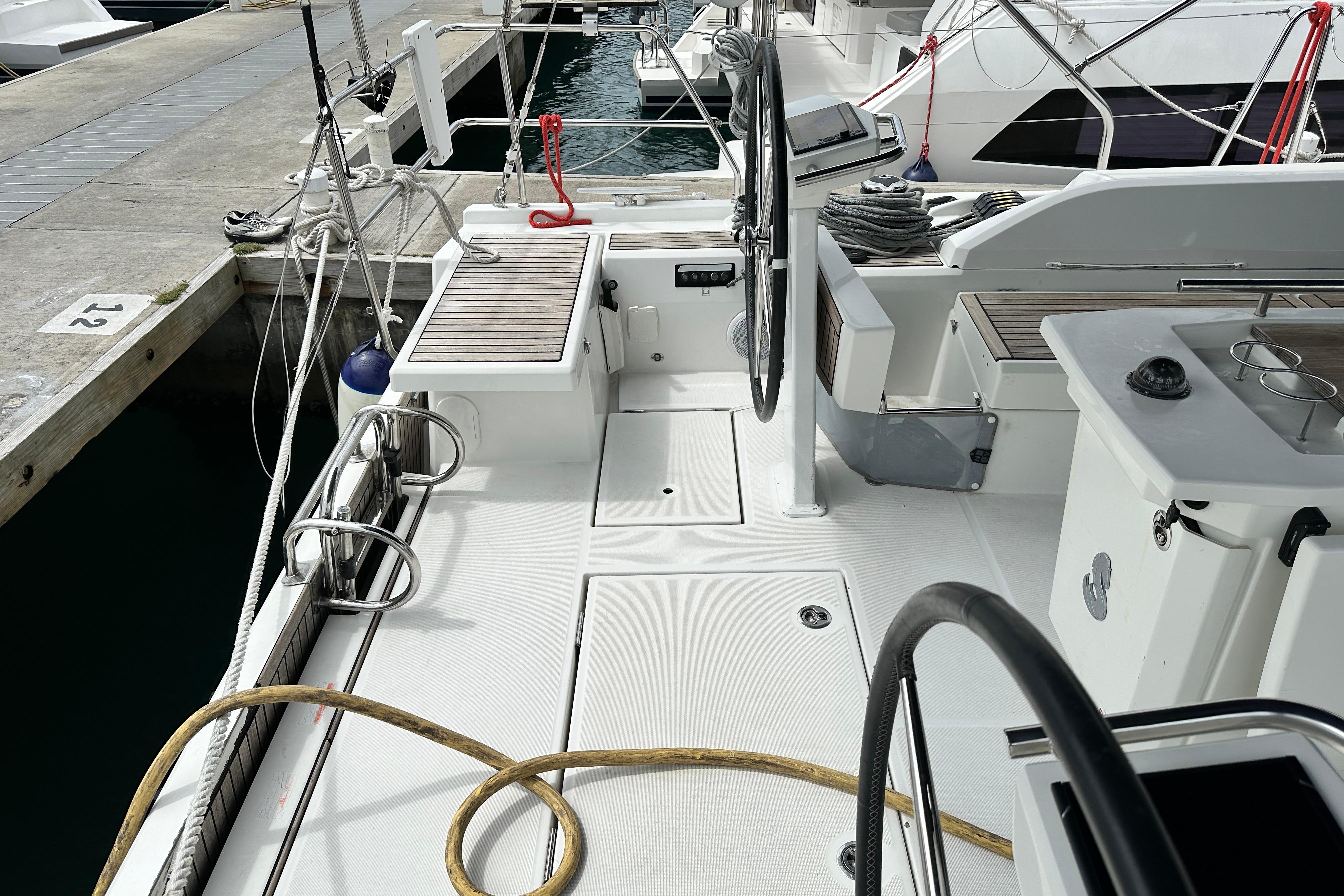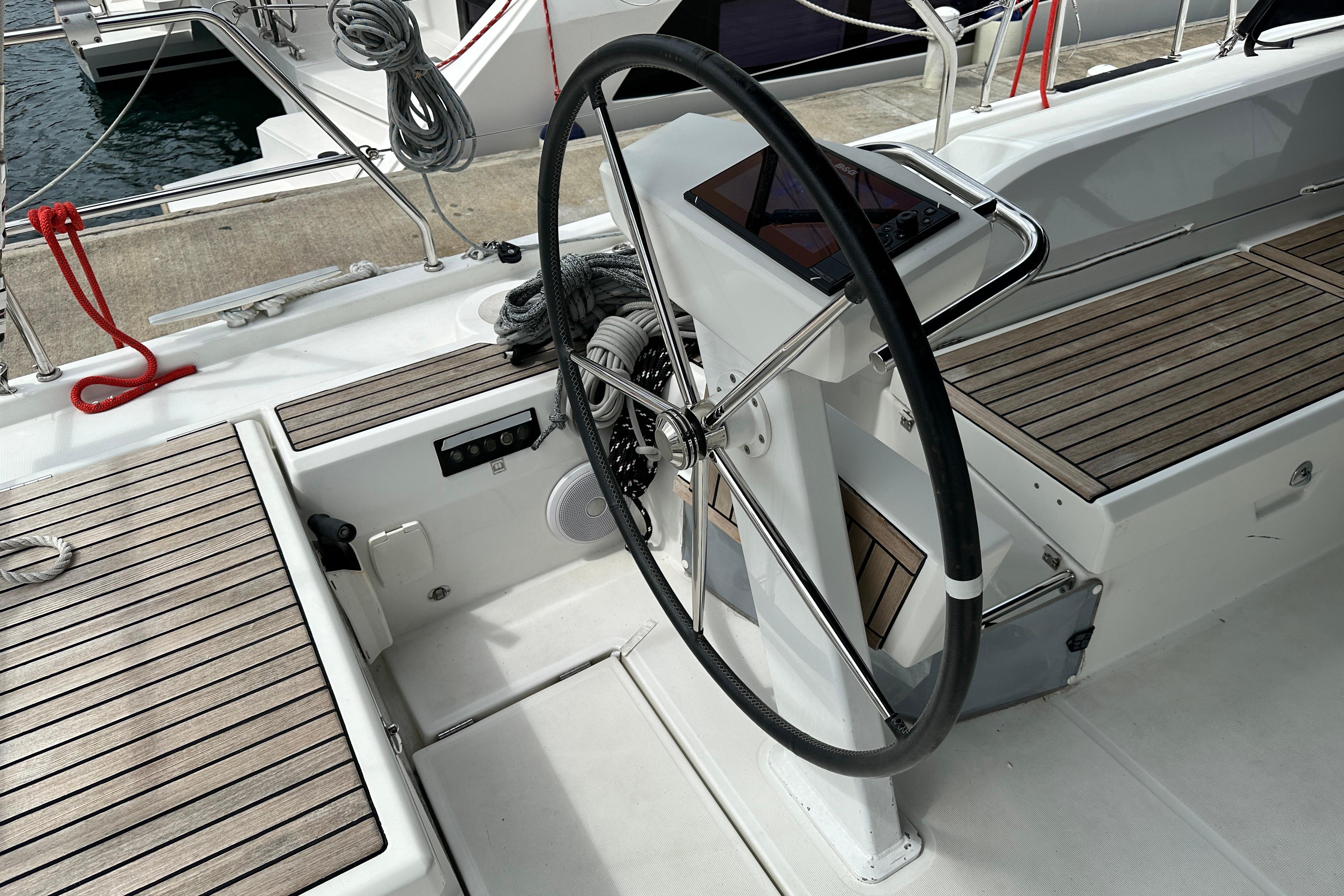 The spacious cockpit, many relaxation and sun bathing areas, as well as an aft swim platform, promise true comfort.