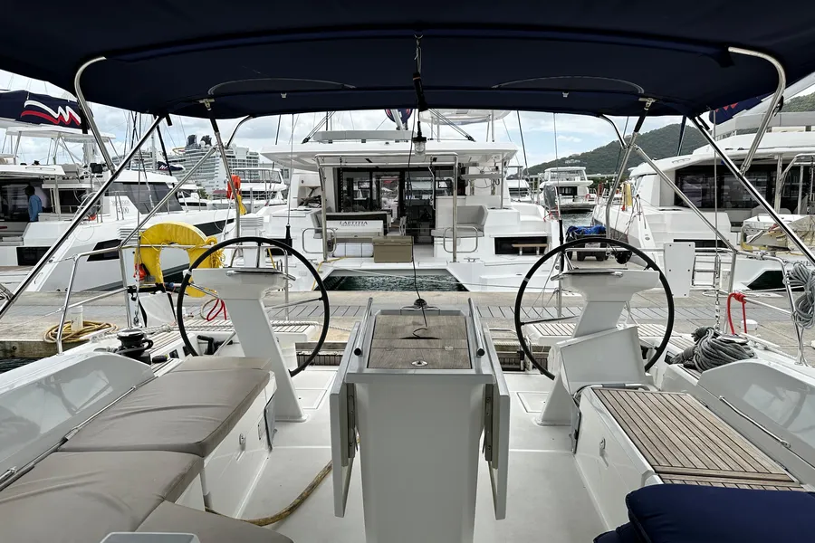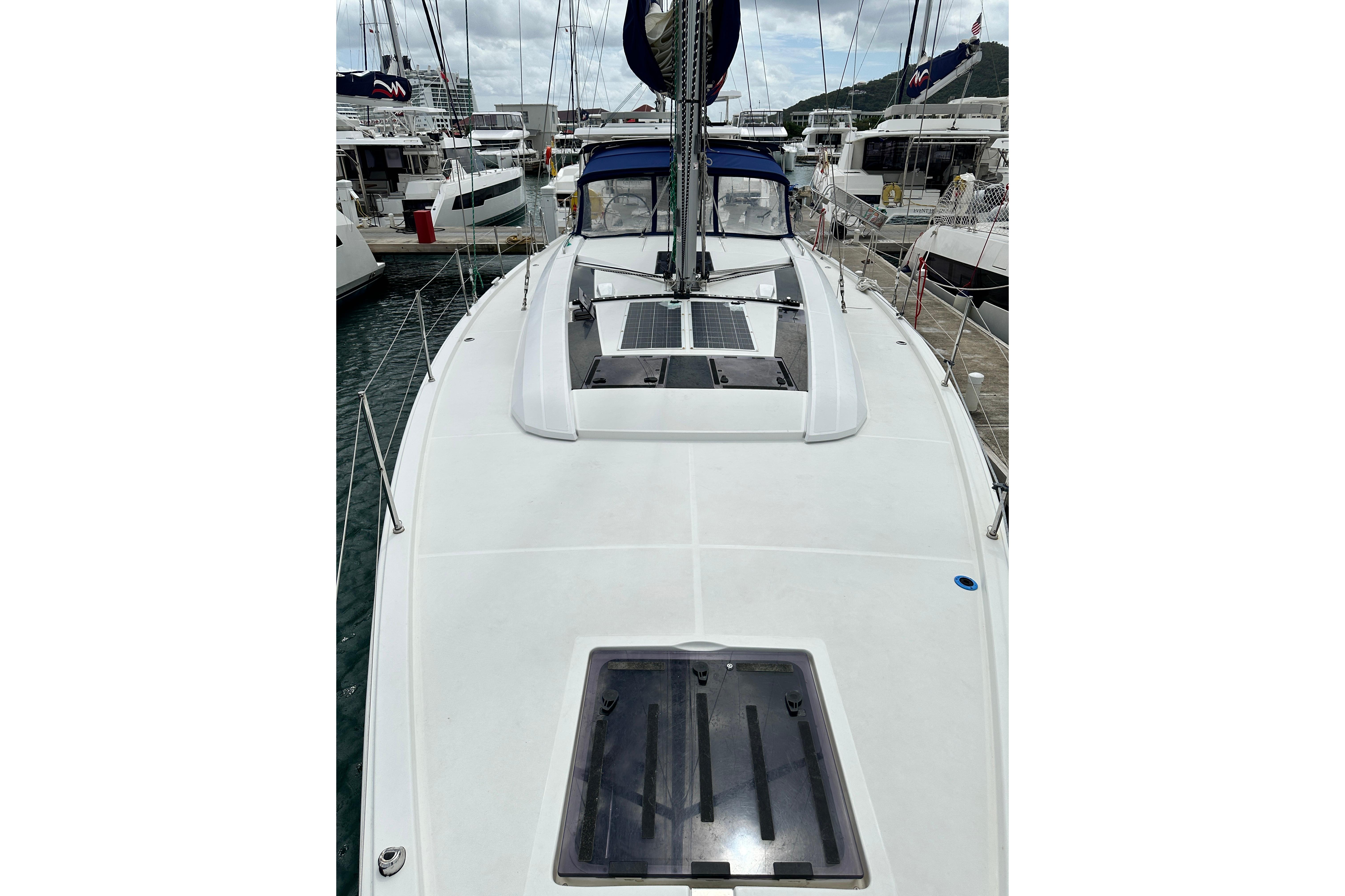 Equipped with the latest in yacht technology and upgrades, including: a watermaker, inverter, solar panels, underwater lights, electric transom, electric winch, bow thruster, gas grill and generator-powered air conditioning, the 52.3 offers the ultimate in onboard comfort, ensuring a stress-free charter vacation for all.