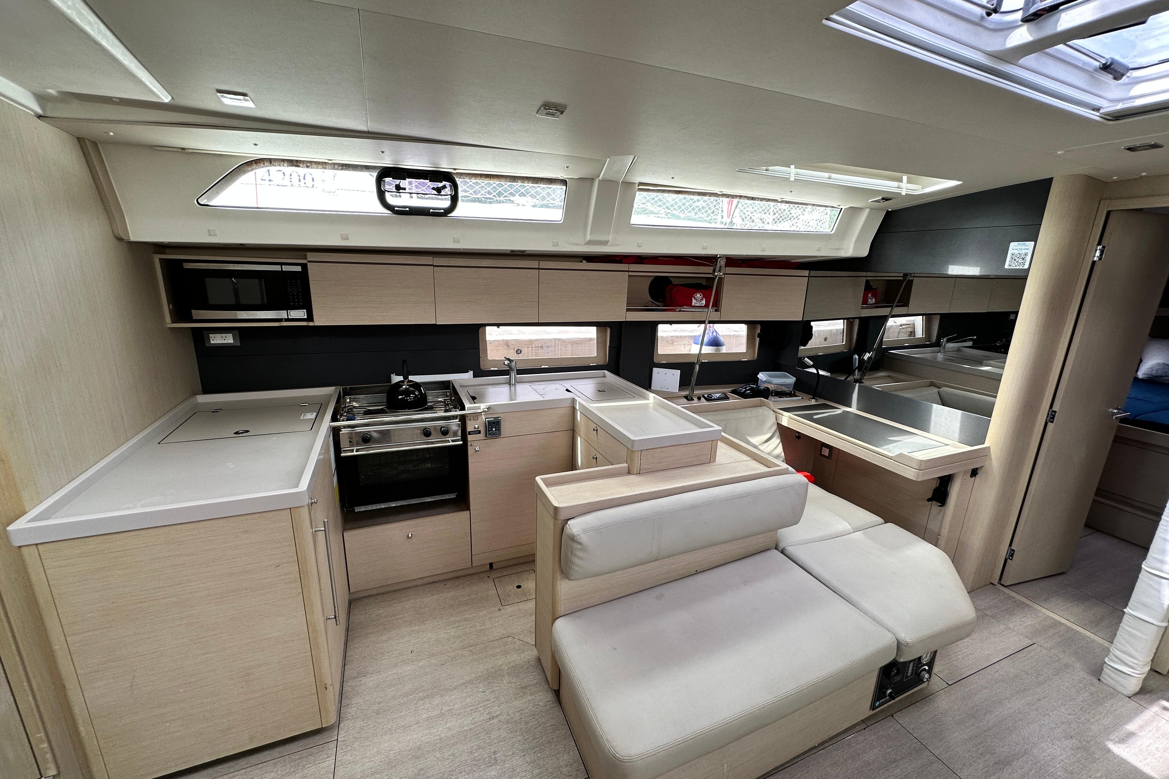 With 3 double en-suite cabins sleeping up to 6 guests comfortably, and a convertible saloon that offers sleeping arrangements for up to two additional guests, this spacious yacht allows for maximum comfort on the water, making it the perfect offshore cruiser for families and large parties.