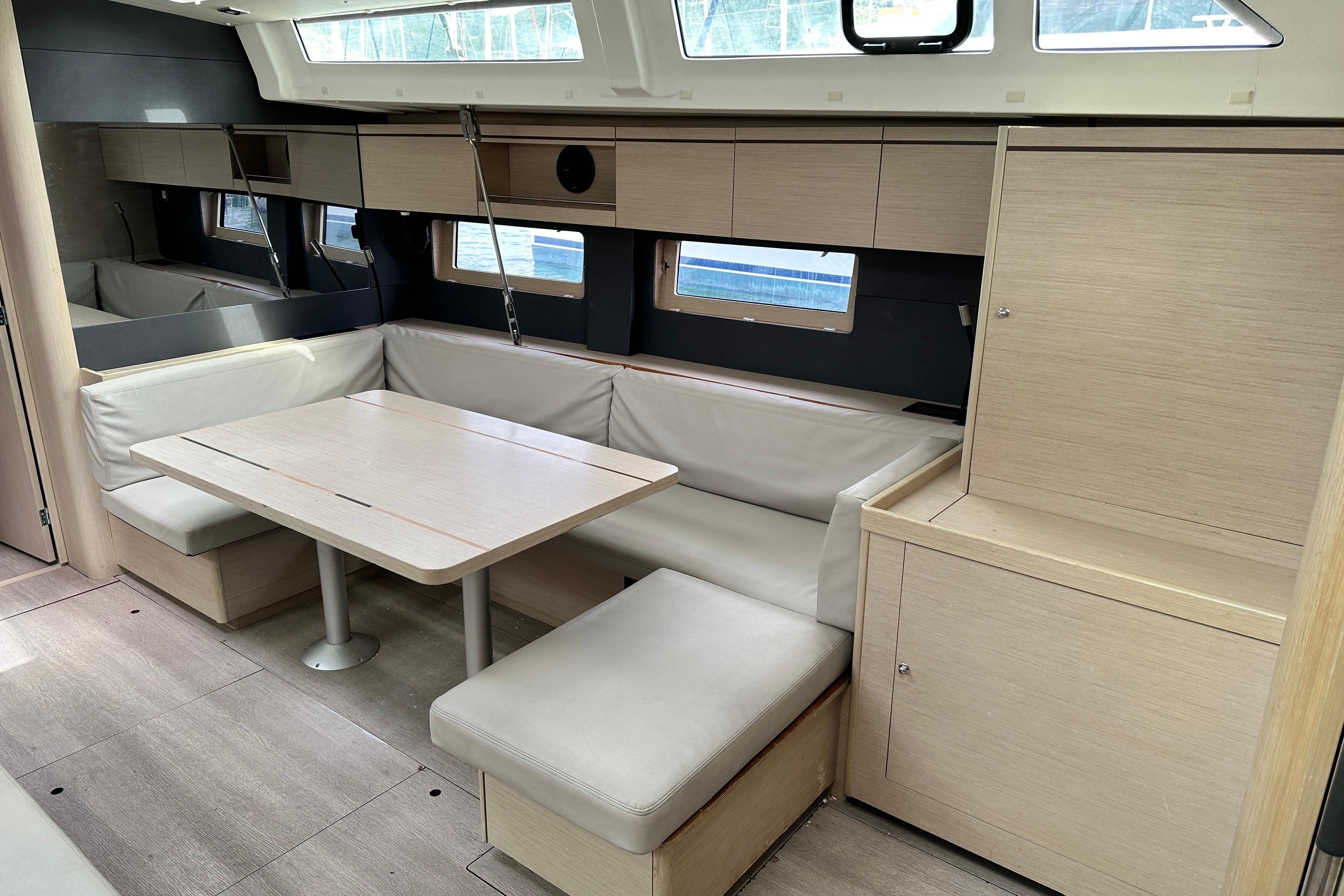The large hull portholes bathe the boat in light and elegantly emphasize the interior design by Nauta Design creating a wonderful atmosphere.