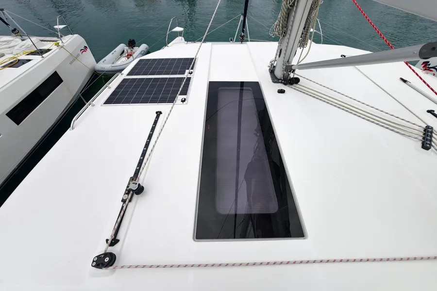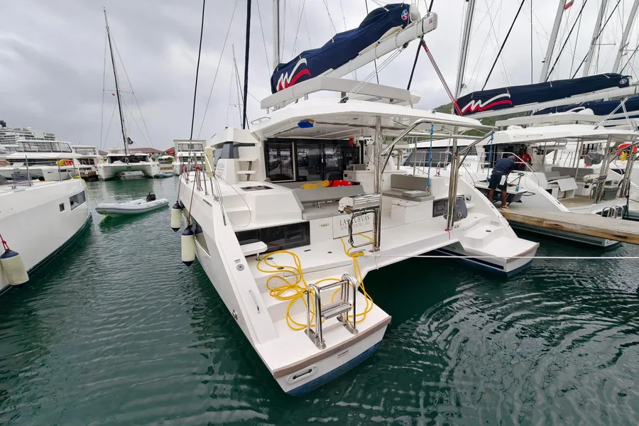 BROKERS REMARKS: Las Cuevas – Discover the hidden wonders of the sea aboard Las Cuevas, the Spanish for ‘The Caves’ an almost new 2025 Leopard 43 offered at a knockdown price from new, with exceptionally low hours. As she’s still in the charter fleet, charter ownership is available with fixed guaranteed payments. She features a 3-cabin, 3-head owner’s layout with the starboard hull dedicated as the spacious owner’s cabin, along with the latest interior scheme, air conditioning, generator, water maker, inverter, Yanmar engines, electric davits, walk-through forward door, and upper lounge on the hardtop.